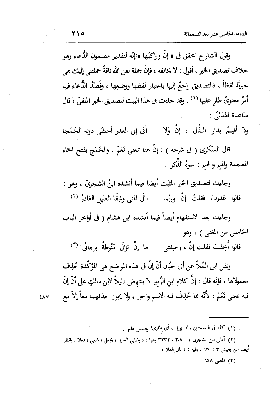 قَالَ السكرِي فِي شَرحه: إِن هُنَا بِمَعْنى نعم. والخمج بِفَتْح الْخَاء الْمُعْجَمَة وَالْمِيم وَالْجِيم: سوء وَجَاءَت لتصديق الْخَبَر الْمُثبت أَيْضا فِيمَا أنْشدهُ ابْن الشجري وَهُوَ الْكَامِل