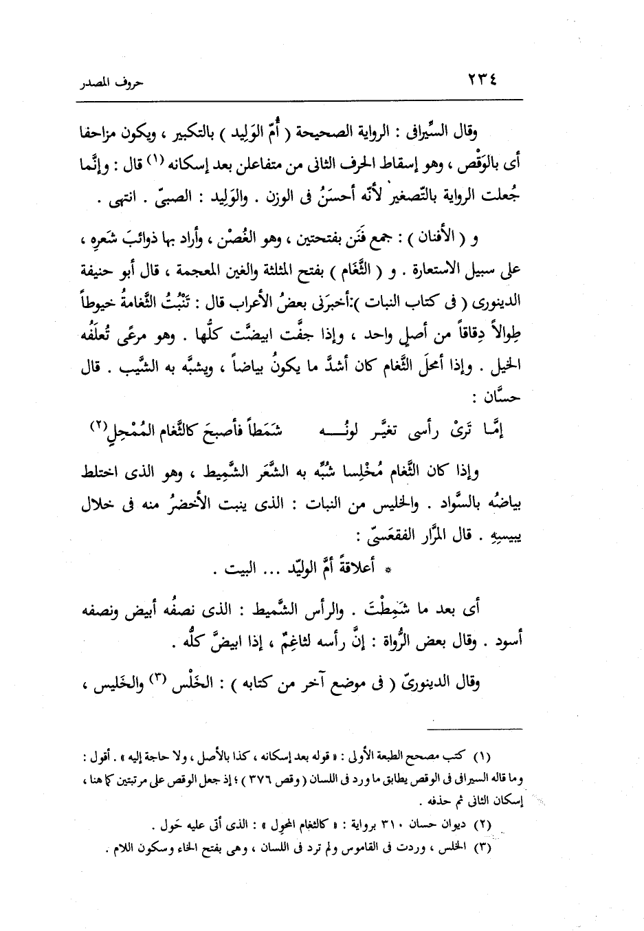 وَقَالَ السيرافي: الرِّوَايَة الصَّحِيحَة أم الْوَلِيد بِالتَّكْبِيرِ وَيكون مزاحفاً أَي: بالوقص وَهُوَ إِسْقَاط الْحَرْف الثَّانِي من متفاعلن بعد إسكانه قَالَ: وَإِنَّمَا جعلت الرِّوَايَة بِالتَّصْغِيرِ لِأَنَّهُ أحسن فِي الْوَزْن.