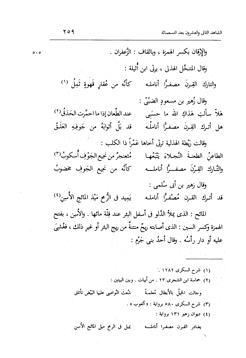 (هَل أترك الْقرن مصفرّاً أنامله ... قد بلّ من جَوْفه العلق)