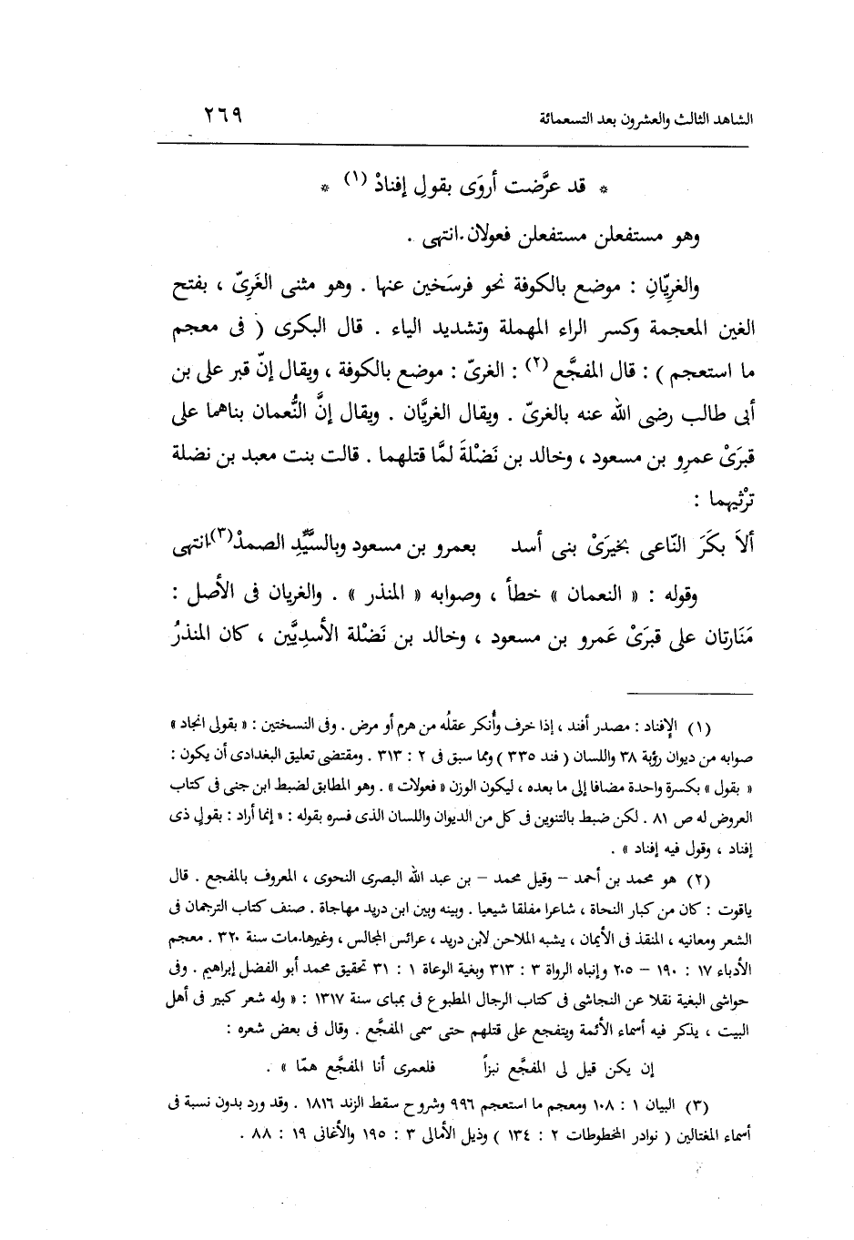 وَيُقَال أَن النُّعْمَان بناهما على قَبْرِي عَمْرو بن مَسْعُود. وخَالِد بن نَضْلَة لما قَتلهمَا. قَالَت هِنْد بنت معبد بن نَضْلَة ترثيهما: الطَّوِيل