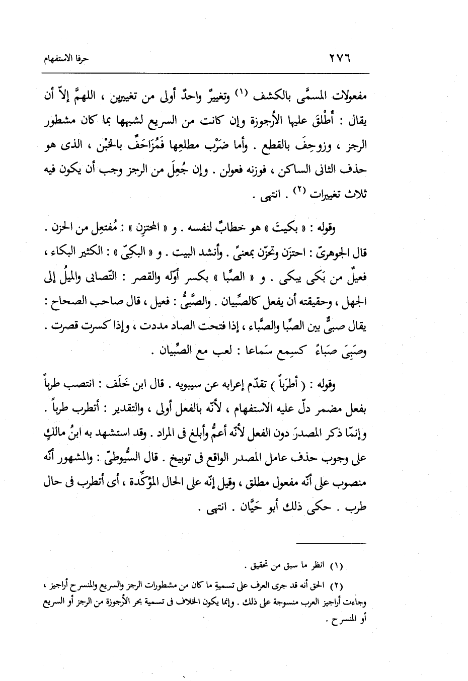 اللَّهُمَّ إِلَّا أَن يُقَال: أطلق عَلَيْهَا الأرجوزة وَإِن كَانَت من السَّرِيع لشبهها بِمَا كَانَ مشطور الرجز وزوحف بِالْقطعِ.