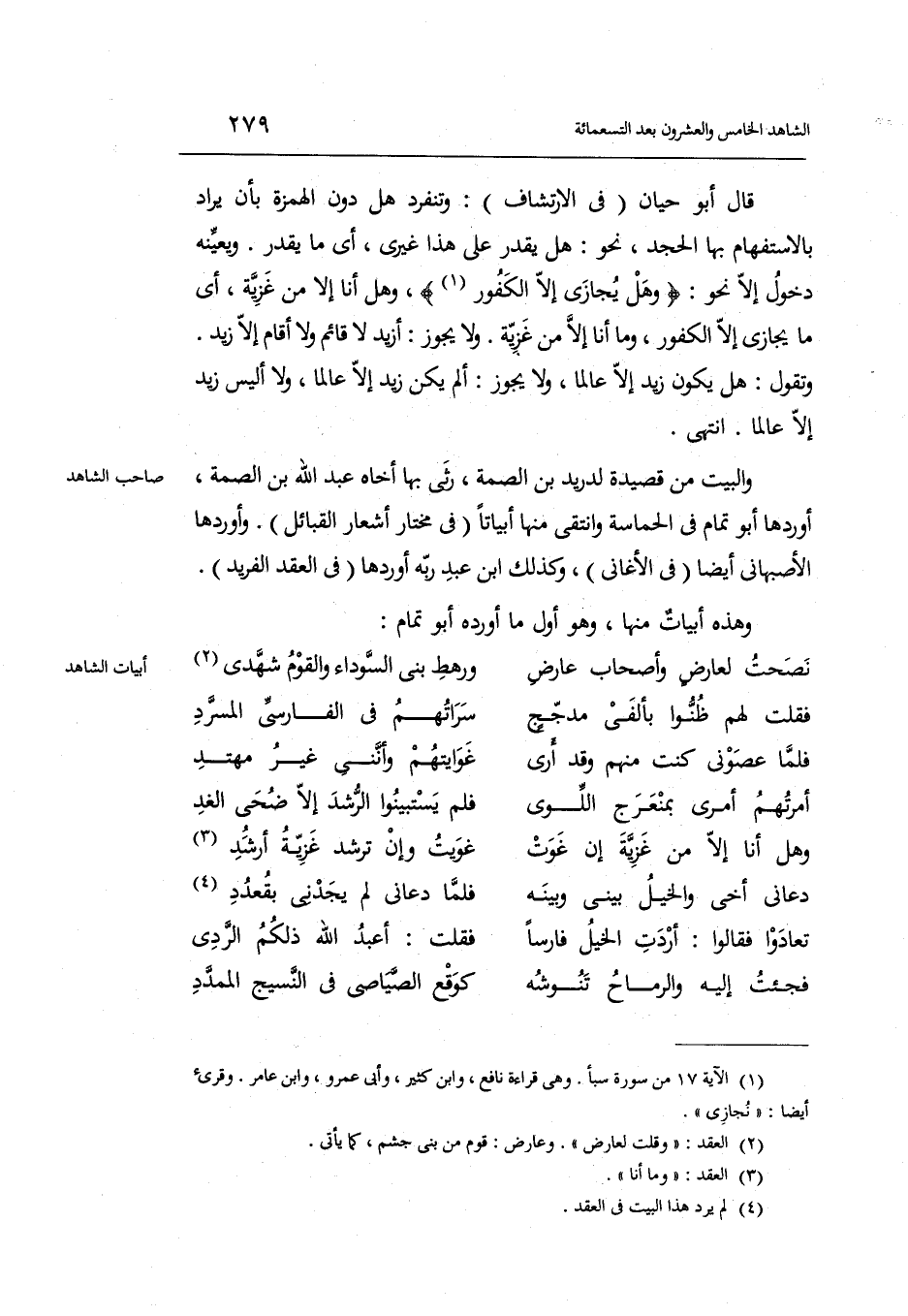 وَلَا يجوز أَزِيد لَا قَائِم وَلَا أَقَامَ إِلَّا زيد وَتقول: هَل يكون زيد إِلَّا عَالما وَلَا يجوز: ألم يكن وَالْبَيْت من قصيدة لدريد بن الصمَّة رثى بهَا أَخَاهُ عبد الله بن الصمَّة أوردهَا