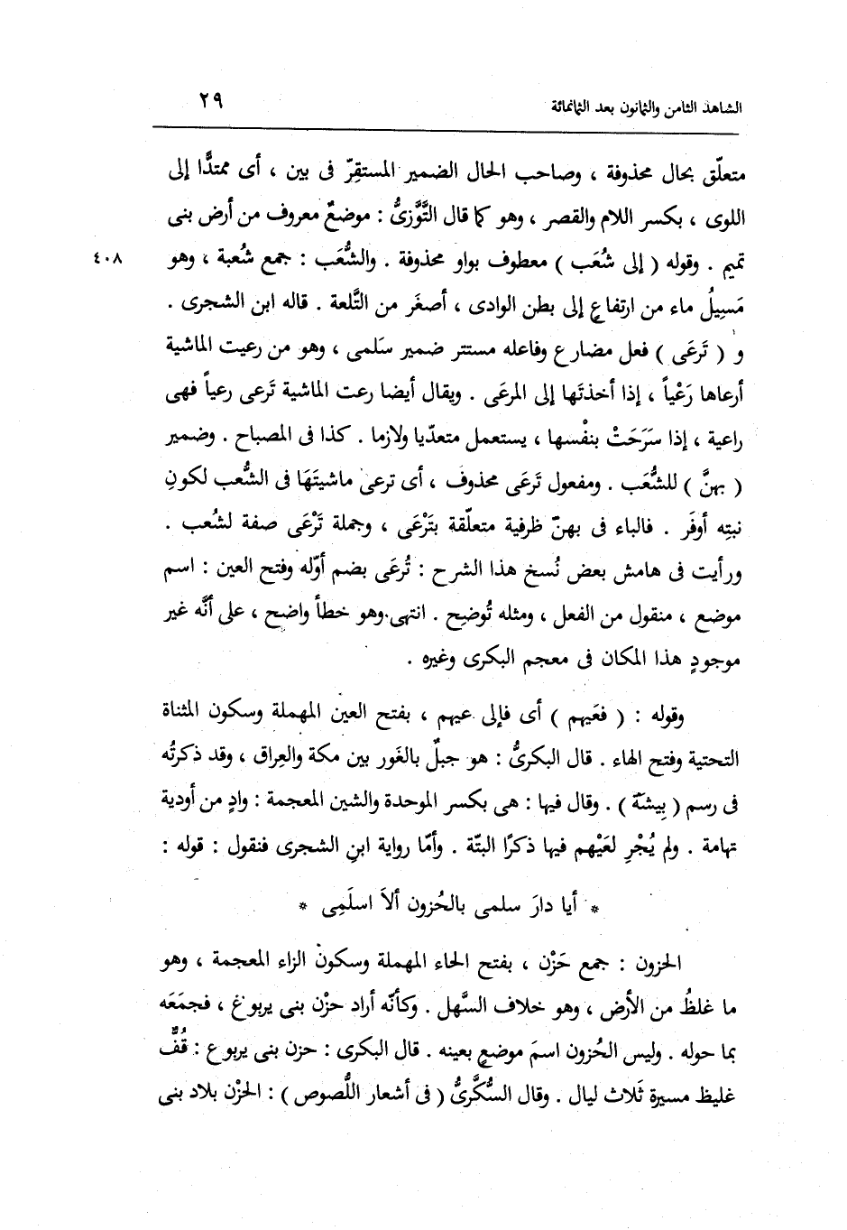 وَلم يجر لعيهم فِيهَا ذكرا البتّة وَأما رِوَايَة ابْن الشجري فنتقول: قَوْله: الحزون: جمع حزن بِفَتْح الْحَاء الْمُهْملَة وَسُكُون الزاء الْمُعْجَمَة وَهُوَ مَا غلظ من الأَرْض وهوخلاف السّهل وَكَأَنَّهُ أَرَادَ حزن بني يَرْبُوع فَجَمعه بِمَا حوله وَلَيْسَ الحزون اسْم مَوضِع بِعَيْنِه.