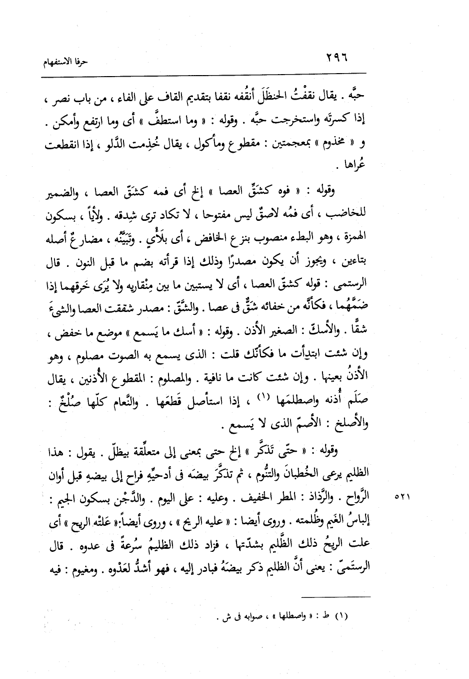 قَالَ الرستمي: قَوْله: كشق الْعَصَا أَي: لَا يستبين مَا بَين منقاريه وَلَا يرى خرقهما إِذا ضمهما فَكَأَنَّهُ من خفائه شقٌ فِي عَصا. والشق: مصدر شققت الْعَصَا وَالشَّيْء شقاً. والأسك: الصَّغِير الْأذن.