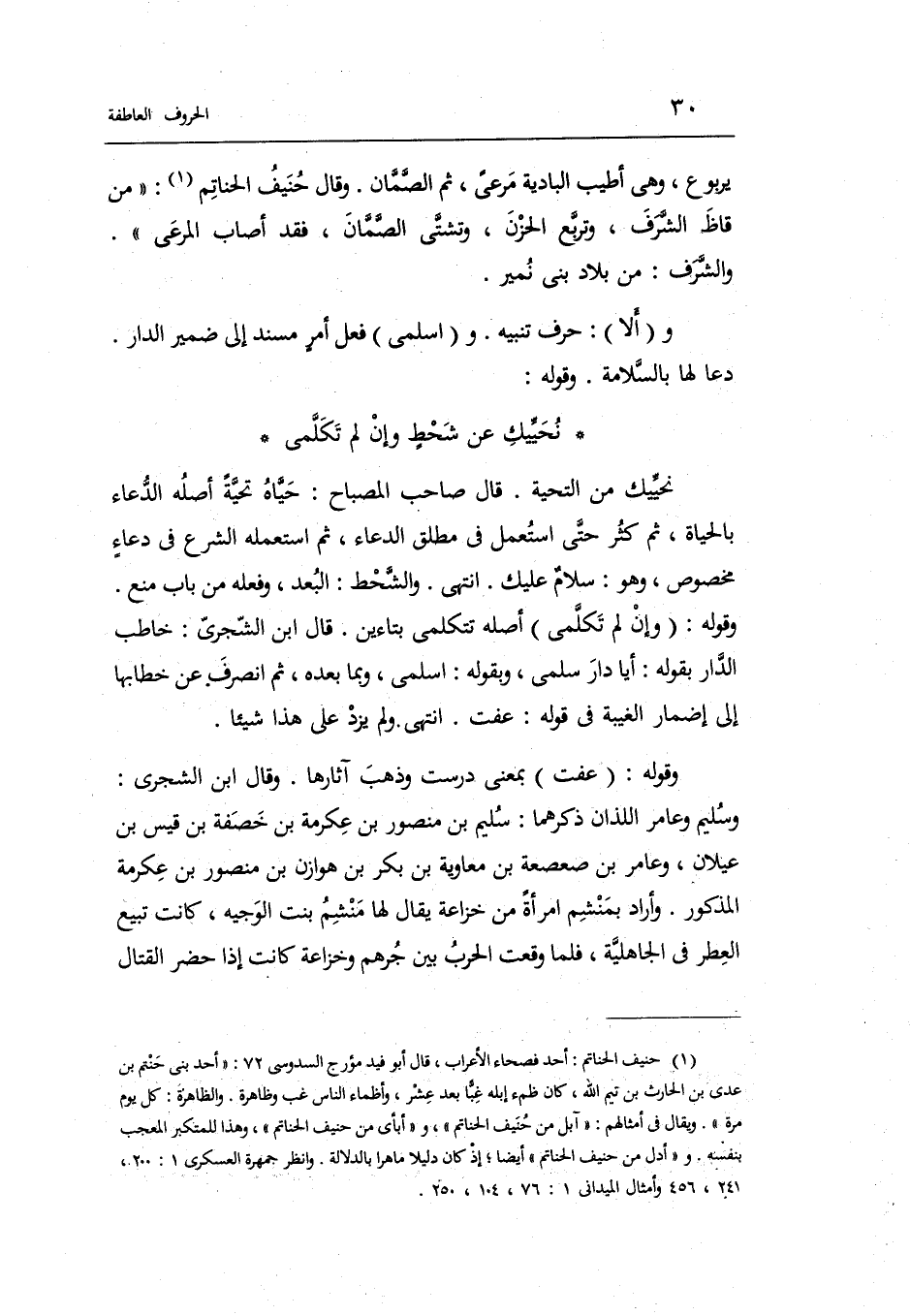 وَقَوله: نحيّيك عَن شحطٍ وَإِن لم تكلّمي نحيّيك: من التَّحِيَّة قَالَ صَاحب الْمِصْبَاح: حيّاه تحيّة أَصله الدُّعَاء بِالْحَيَاةِ ثمَّ كثر حَتَّى اسْتعْمل فِي مُطلق الدُّعَاء ثمَّ اسْتَعْملهُ الشَّرْع فِي دُعَاء مَخْصُوص وَهُوَ: سَلام عَلَيْك انْتهى.