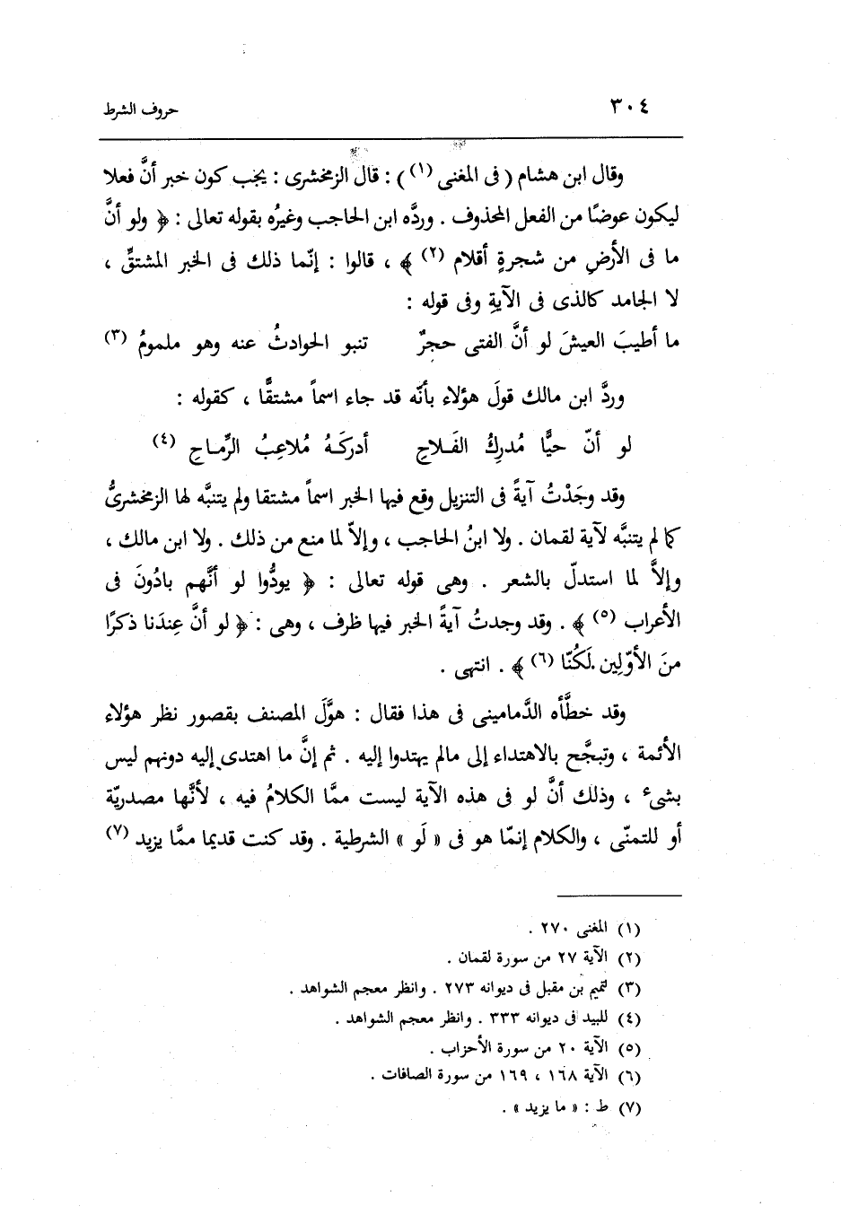 وَقد خطّأه الدماميني فِي هَذَا فَقَالَ: هوّل المُصَنّف بقصور نظر هَؤُلَاءِ الْأَئِمَّة وتبجّج بالاهتداء إِلَى مَا لم يهتدوا إِلَيْهِ ثمَّ إِن مَا اهْتَدَى إِلَيْهِ دونهم لَيْسَ بِشَيْء وَذَلِكَ أَن لَو فِي هَذِه الْآيَة لَيست مِمَّا الْكَلَام فِيهِ لِأَنَّهَا مَصْدَرِيَّة أَو للتمنّي وَالْكَلَام إِنَّمَا هُوَ فِي لَو الشّرطِيَّة.