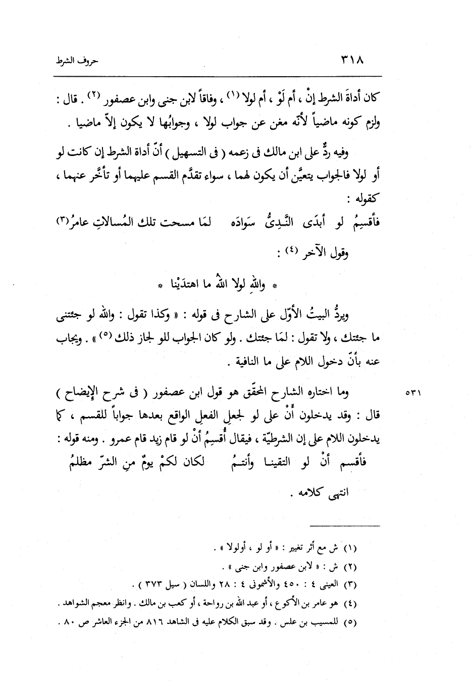 وَالله لَوْلَا الله مَا اهتدينا وَيرد الْبَيْت الأول على الشَّارِح فِي قَوْله: وَكَذَا تَقول: وَالله لَو جئتني مَا جِئتُكُمْ وَلَا تَقول: لما جئْتُك. وَلَو كَانَ الْجَواب للو لجَاز ذَلِك. وَيُجَاب عَنهُ بِأَن دُخُول اللَّام على مَا النافية.