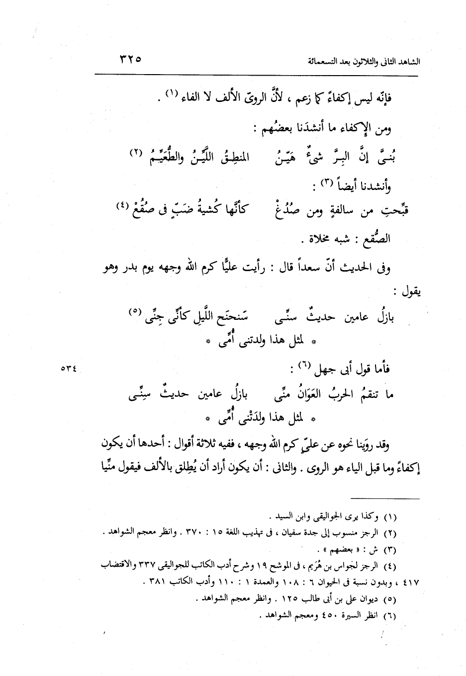 فَإِنَّهُ لَيْسَ إكفاء كَمَا زعم لِأَن الروي الْألف لَا الْفَاء.