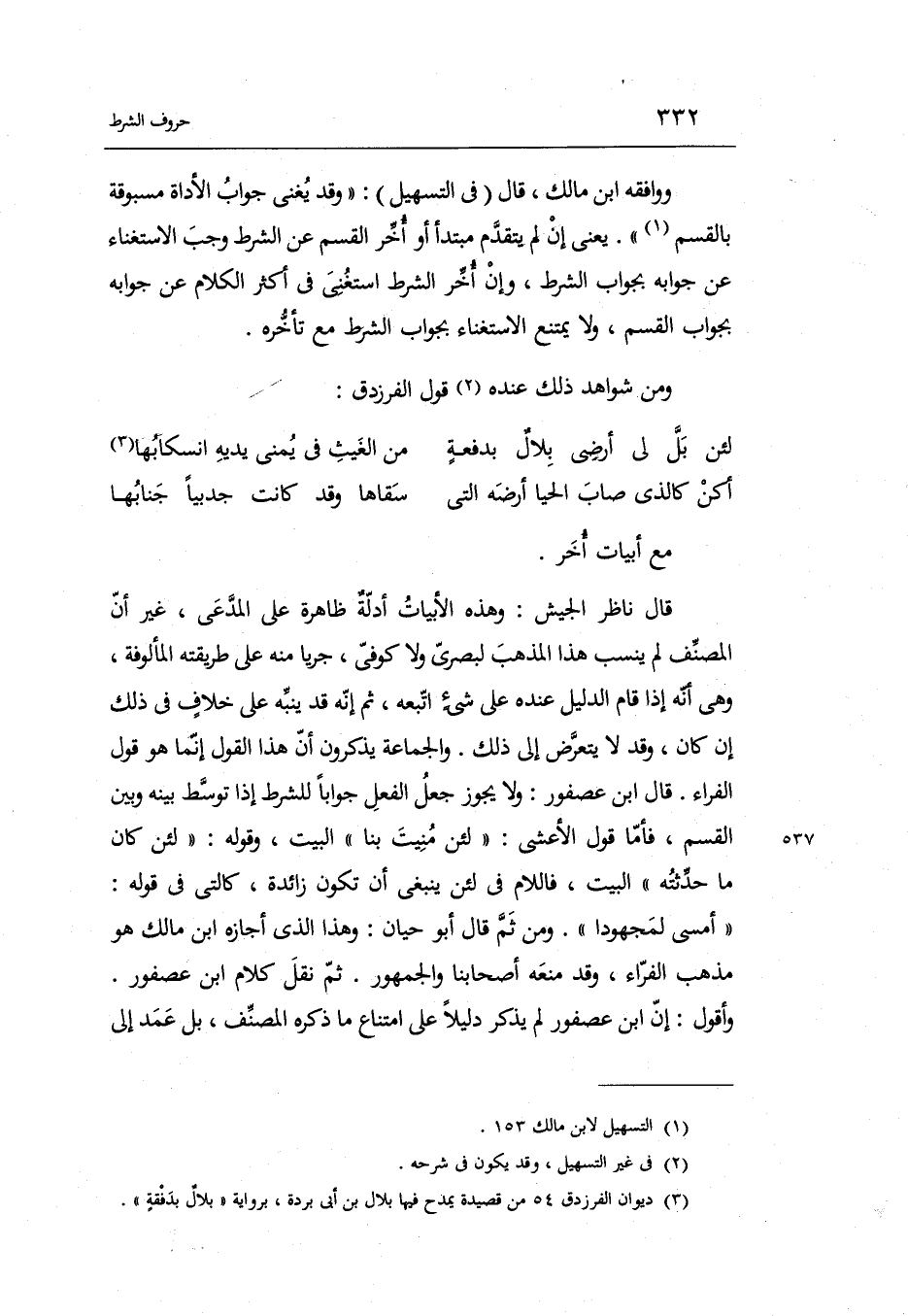 وَرُبمَا جزم الشَّاعِر لِأَن لَئِن إِن الَّتِي يجازى بهَا زيدت عَلَيْهَا لَام فَوجه الْفِعْل فِيهَا إِلَى فعل وَلَو أَتَى بيفعل لجَاز جزمه. وَقد جزم بعض الشُّعَرَاء ب لَئِن وَبَعْضهمْ بِلَا الَّتِي هِيَ جوابها.