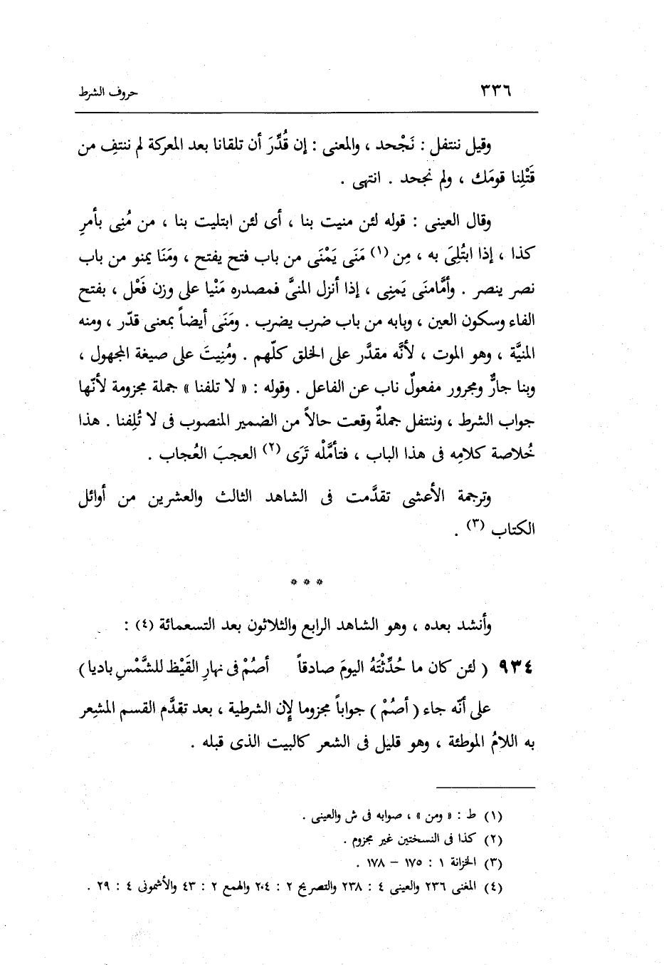 وَقَوله: لاتلفنا لَا: نَافِيَة وتلفنا: مجزوم بإن بِحَذْف الْيَاء على أَنه جَزَاء الشَّرْط. وألفى كوجد معنى وَعَملا فتتعدى إِلَى مفعولين أَصلهمَا الْمُبْتَدَأ وَالْخَبَر كَقَوْلِه: الْبَسِيط