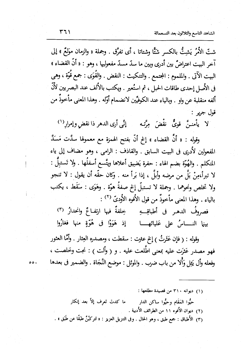 (أَن الْقَضَاء قاذفي فِي هوةٍ ... لَا تستبل نفس من فِيهَا هوى)