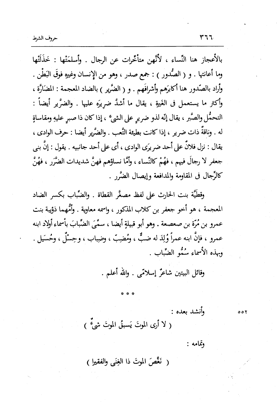 وَلَكِن أعجازاً شَدِيدا ضريرها هَكَذَا أنْشدهُ جمَاعَة من النَّحْوِيين مِنْهُم أَبُو عَليّ فِي التَّذْكِرَة وَغَيرهَا وَابْن جني فِي سرالصناعة وَغَيره وَابْن يعِيش وَابْن خلف وَغَيرهم. وَوَقع فِي نسخ الشَّرْح: لديكم بدل لجَعْفَر. وَهُوَ تَخْلِيط من النساخ.