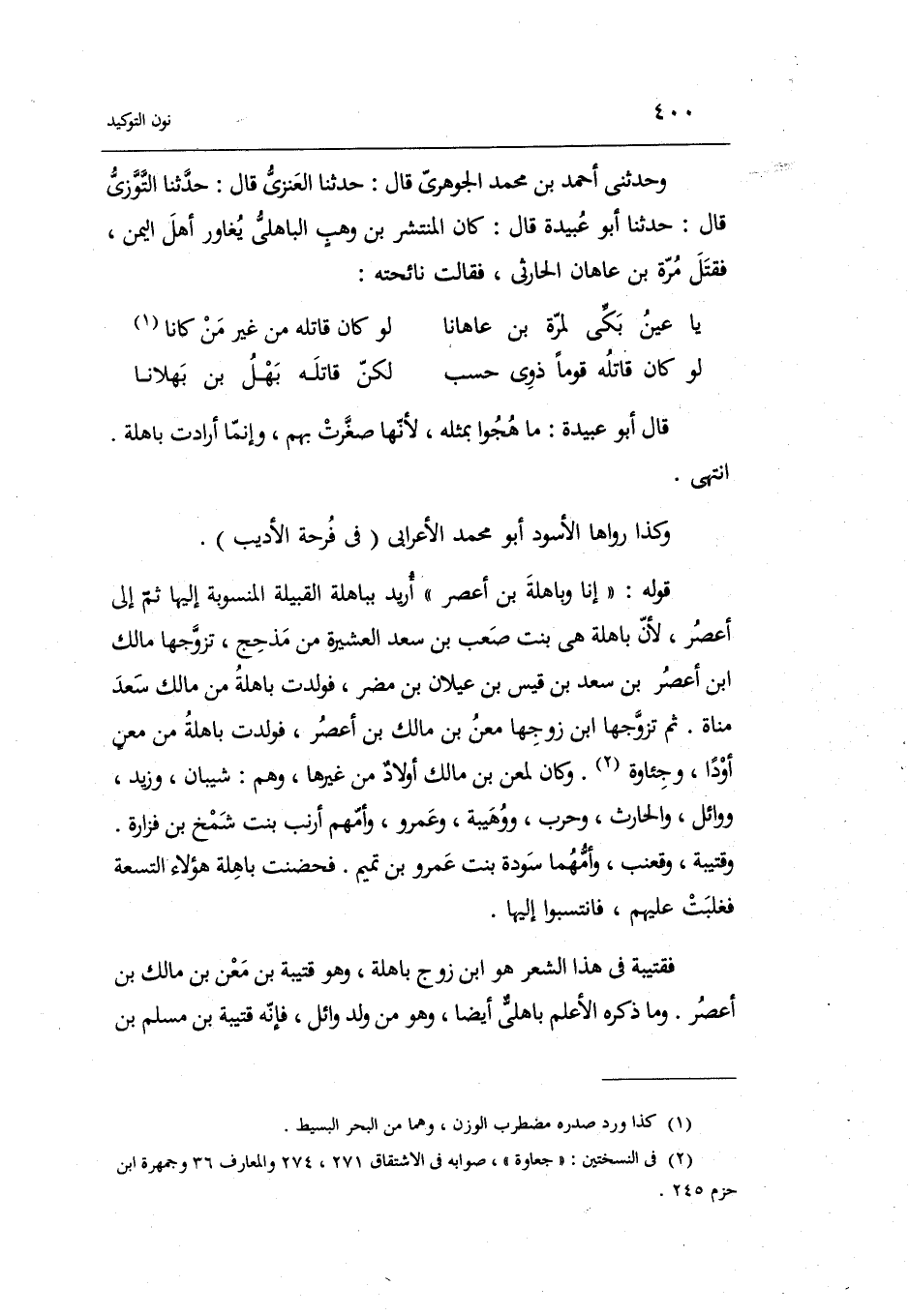 قَوْله: إِنَّا وباهلة بن أعصر أُرِيد بباهلة الْقَبِيلَة المنسوبة إِلَيْهَا ثمَّ إِلَى أعصر لِأَن باهلة هِيَ بنت صَعب بن سعد الْعَشِيرَة من مذْحج تزَوجهَا مَالك بن اعصر بن سعد بن قيس بن عيلان بن مُضر فَولدت باهلة من مَالك سعد مَنَاة.