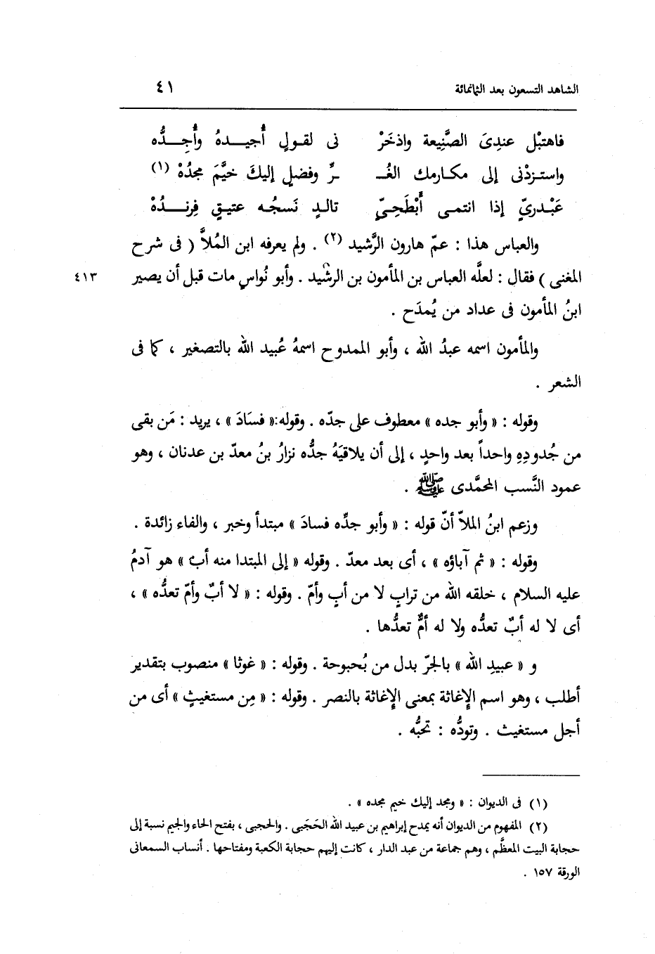 وَلم يعرفهُ ابْن الملا فِي شرح الْمُغنِي فَقَالَ: لَعَلَّه الْعَبَّاس بن الْمَأْمُون بن الرشيد وَأَبُو نواس مَاتَ قبل أَن يصير ابْن الْمَأْمُون فِي عداد من يمدح.