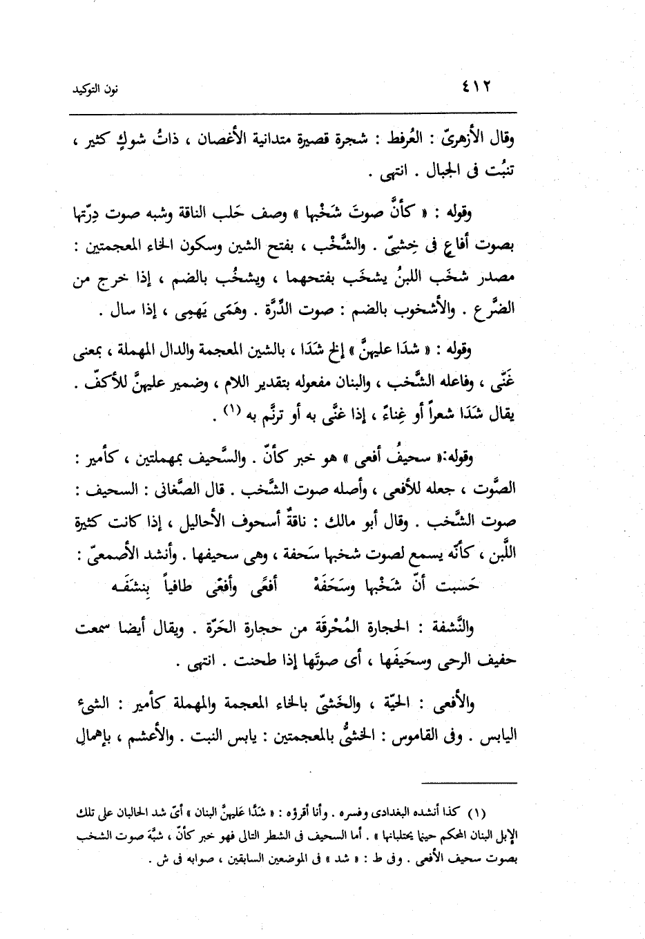 (حسبت أَن شخبها وسحفه ... أَفْعَى وأفعى طافياً بنشفه)