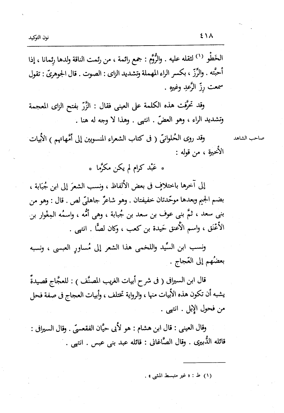 قَالَ ابْن السيرافي فِي شرح أَبْيَات الْغَرِيب المُصَنّف: للعجاج قصيدة يشبه أَن