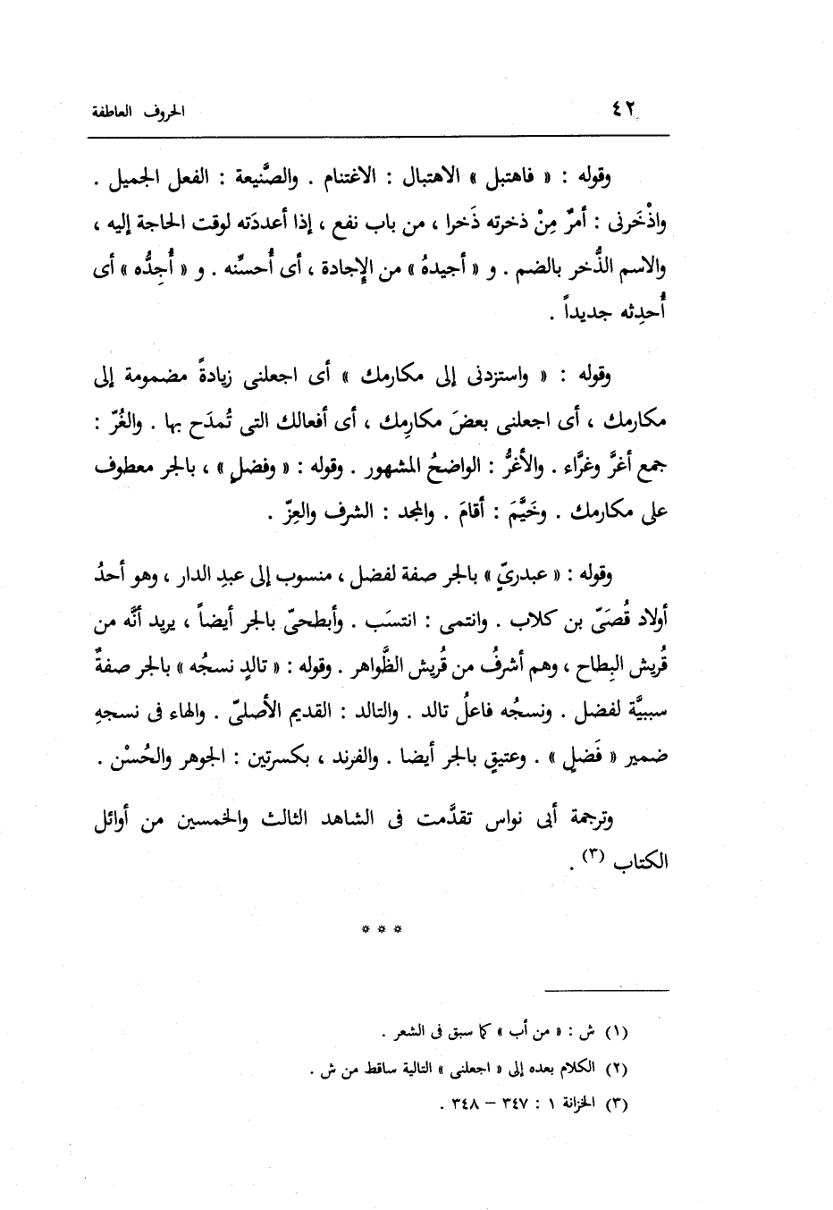 وَقَوله: عبدري بِالْجَرِّ: صفة لفضل مَنْسُوب إِلَى عبد الدَّار وَهُوَ أحد أَوْلَاد قصي بن كلاب.