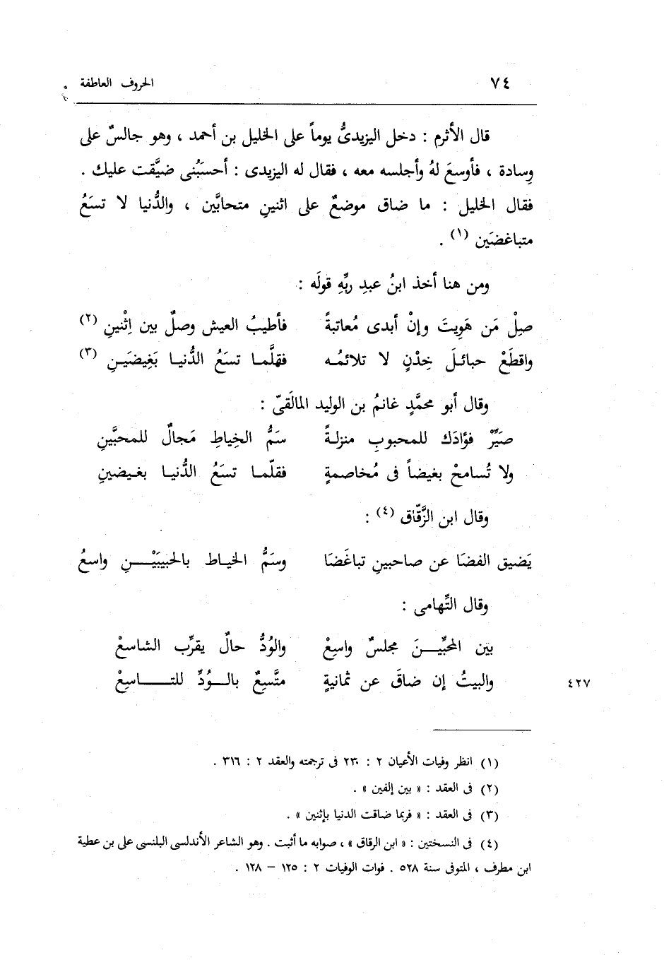 (يضيق الفضا عَن صاحبين تباغضا ... وسم الْخياط بالحبيبين وَاسع)