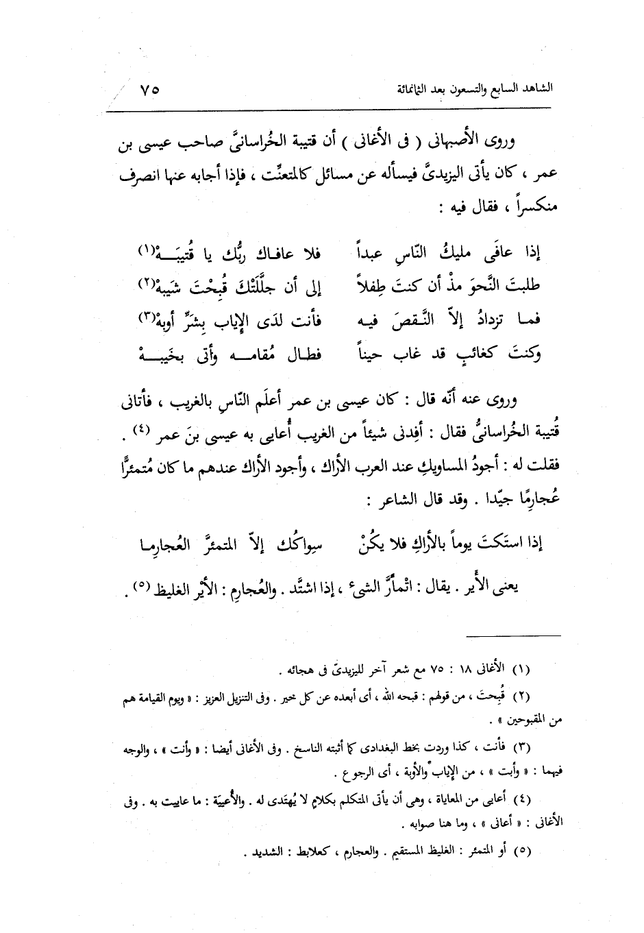 وروى الْأَصْبَهَانِيّ فِي الأغاني أَن قُتَيْبَة الْخُرَاسَانِي صَاحب عِيسَى بن عمر