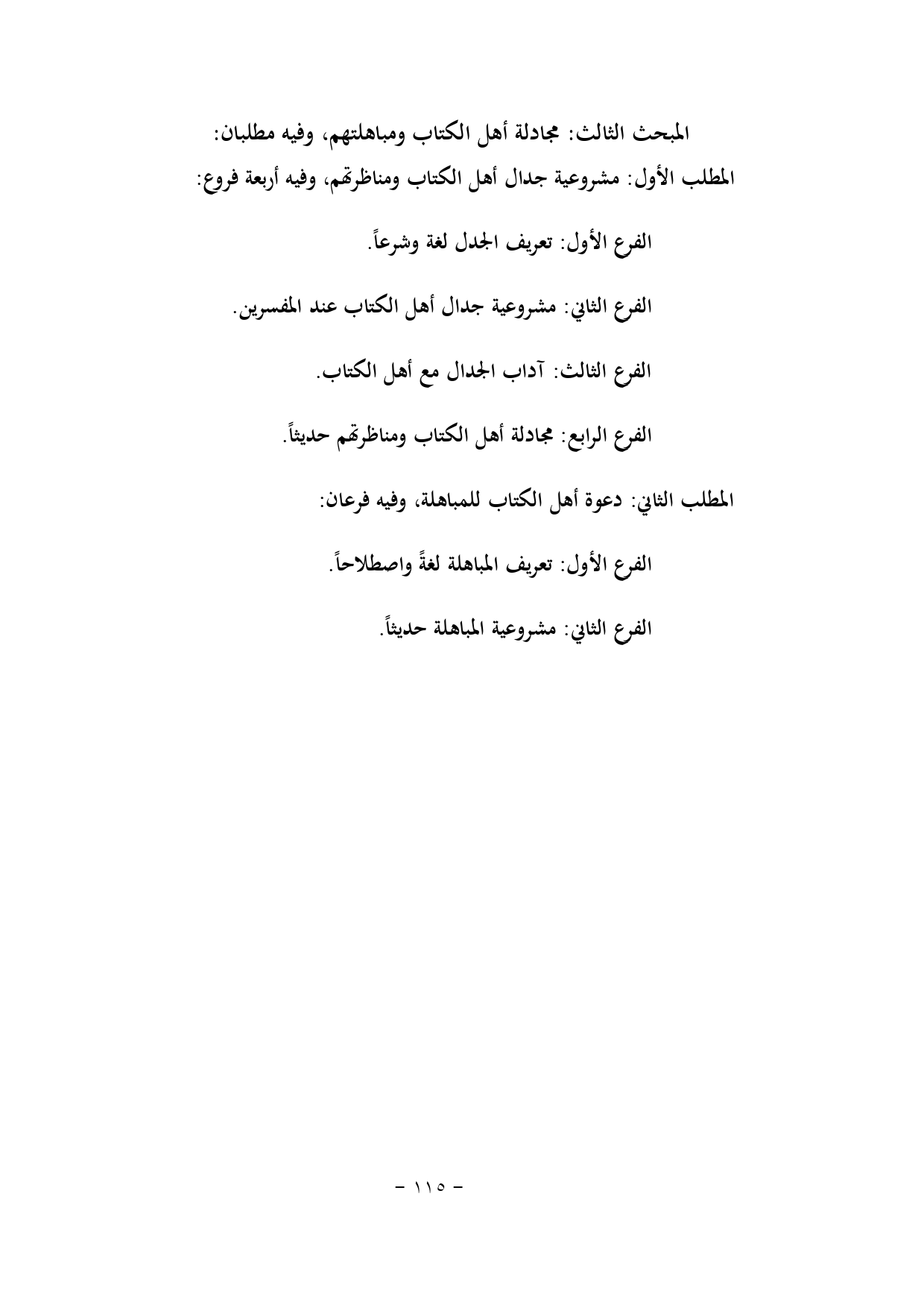 المبحث الثالث: مجادلة أهل الكتاب ومباهلتهم, وفيه مطلبان: