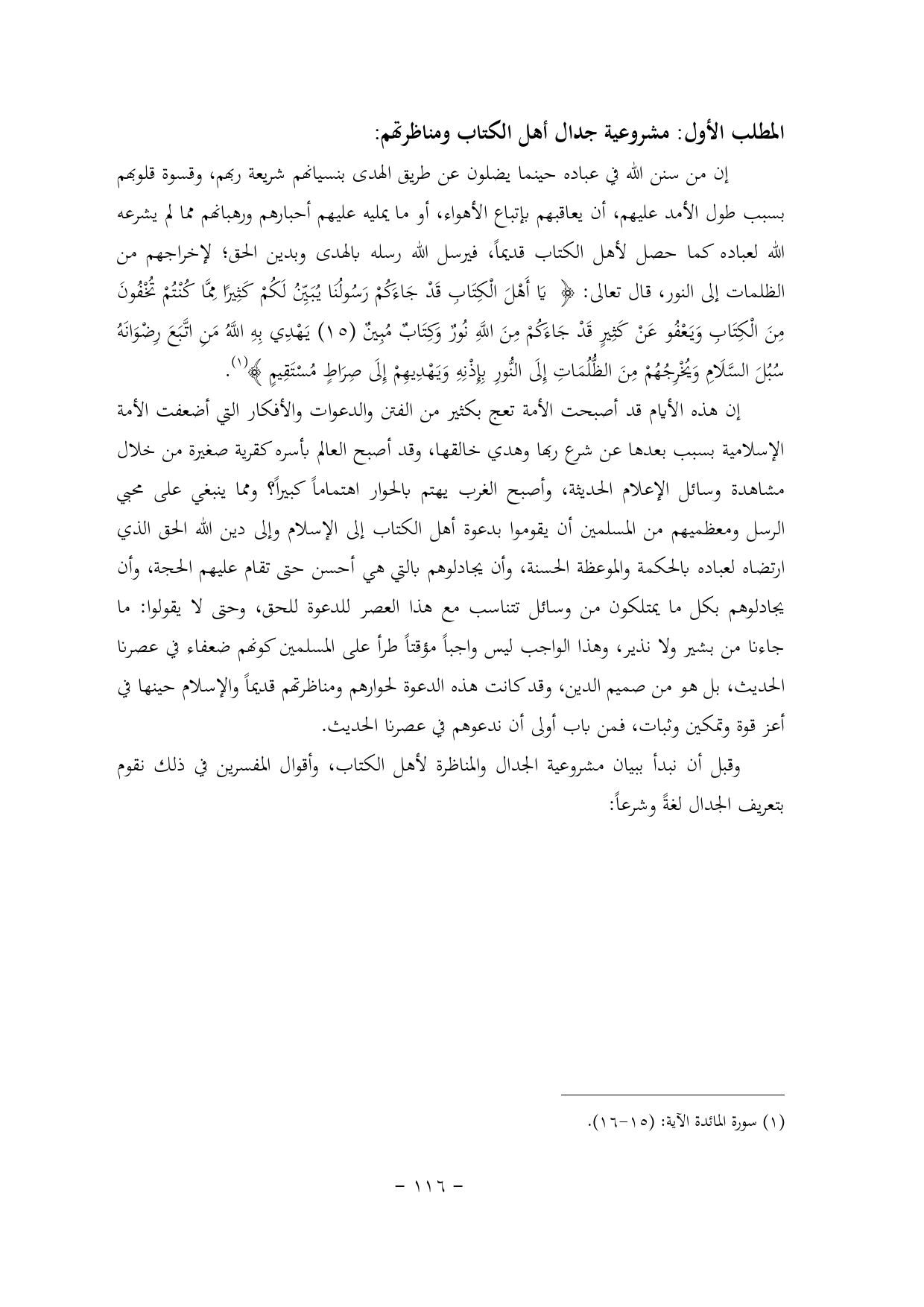 المطلب الأول: مشروعية جدال أهل الكتاب ومناظرتهم: