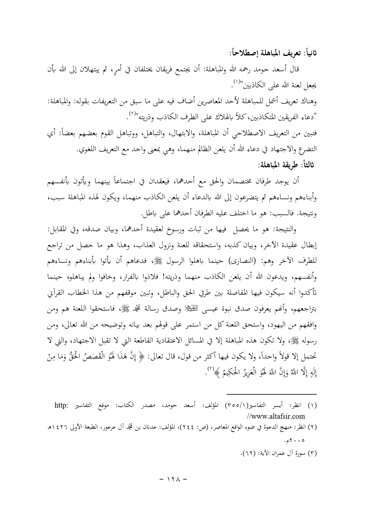 ثانياً: تعريف المباهلة إصطلاحاً: