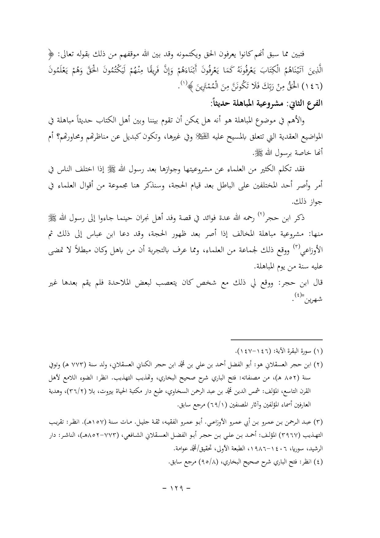 الفرع الثاني: مشروعية المباهلة حديثاً: