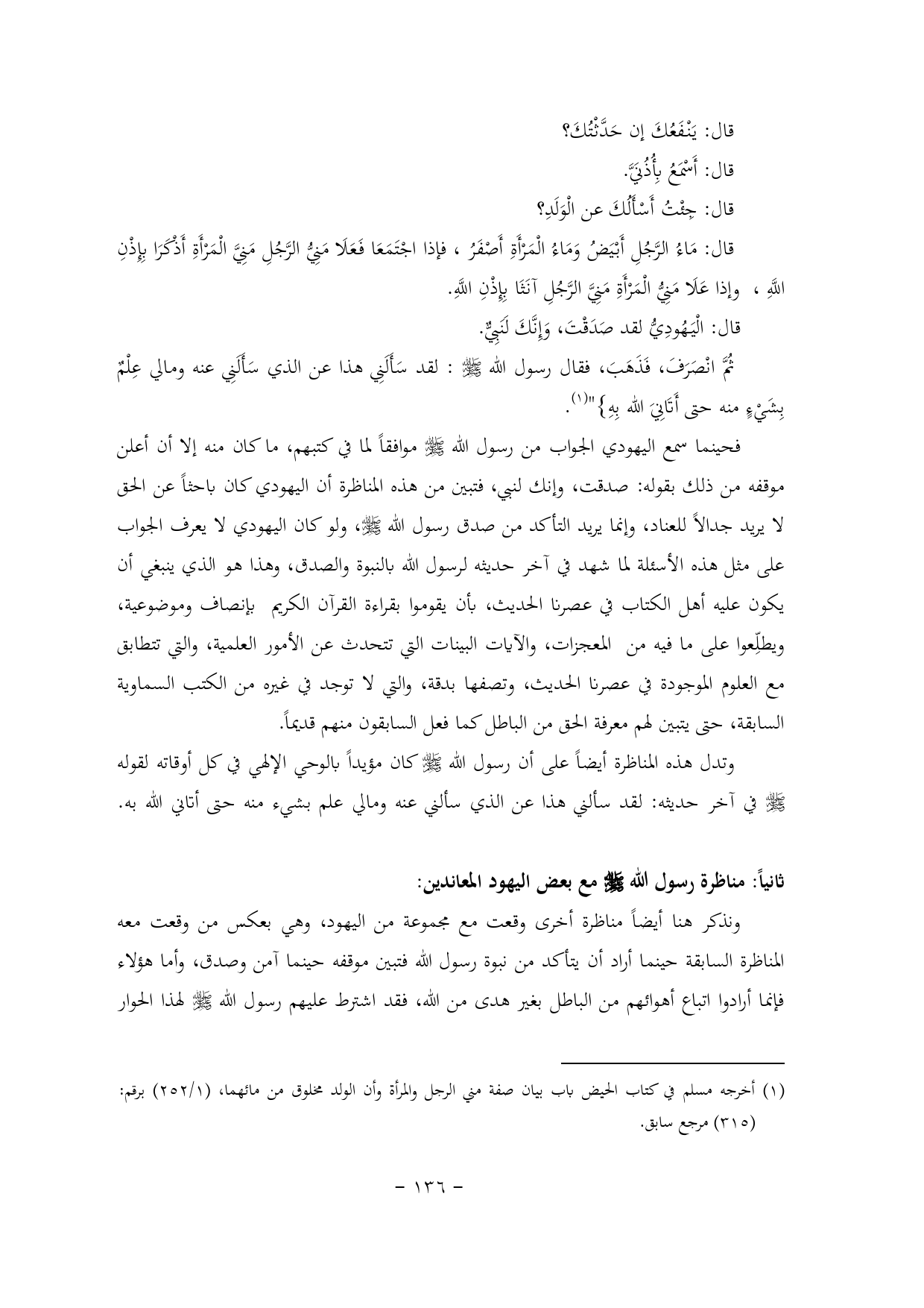 ثانياً: مناظرة رسول الله - صلى الله عليه وسلم - مع بعض اليهود المعاندين: