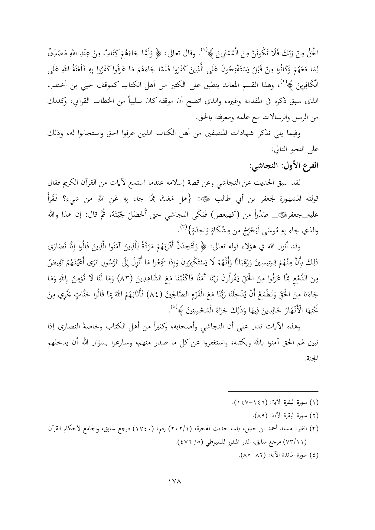 وفيما يلي نذكر شهادات المنصفين من أهل الكتاب الذين عرفوا الحق واستجابوا له, وذلك على النحو التالي: