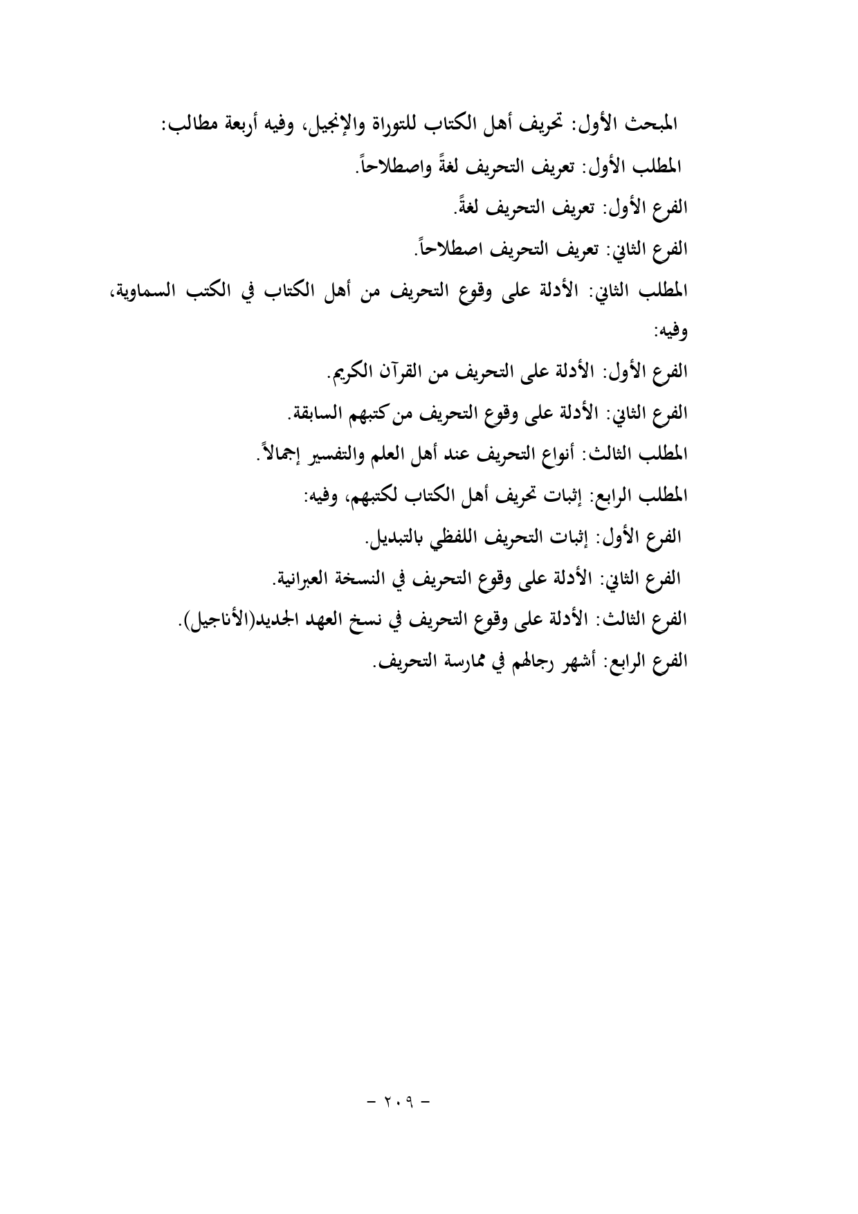 المبحث الأول: تحريف أهل الكتاب للتوراة والإنجيل, وفيه أربعة مطالب: