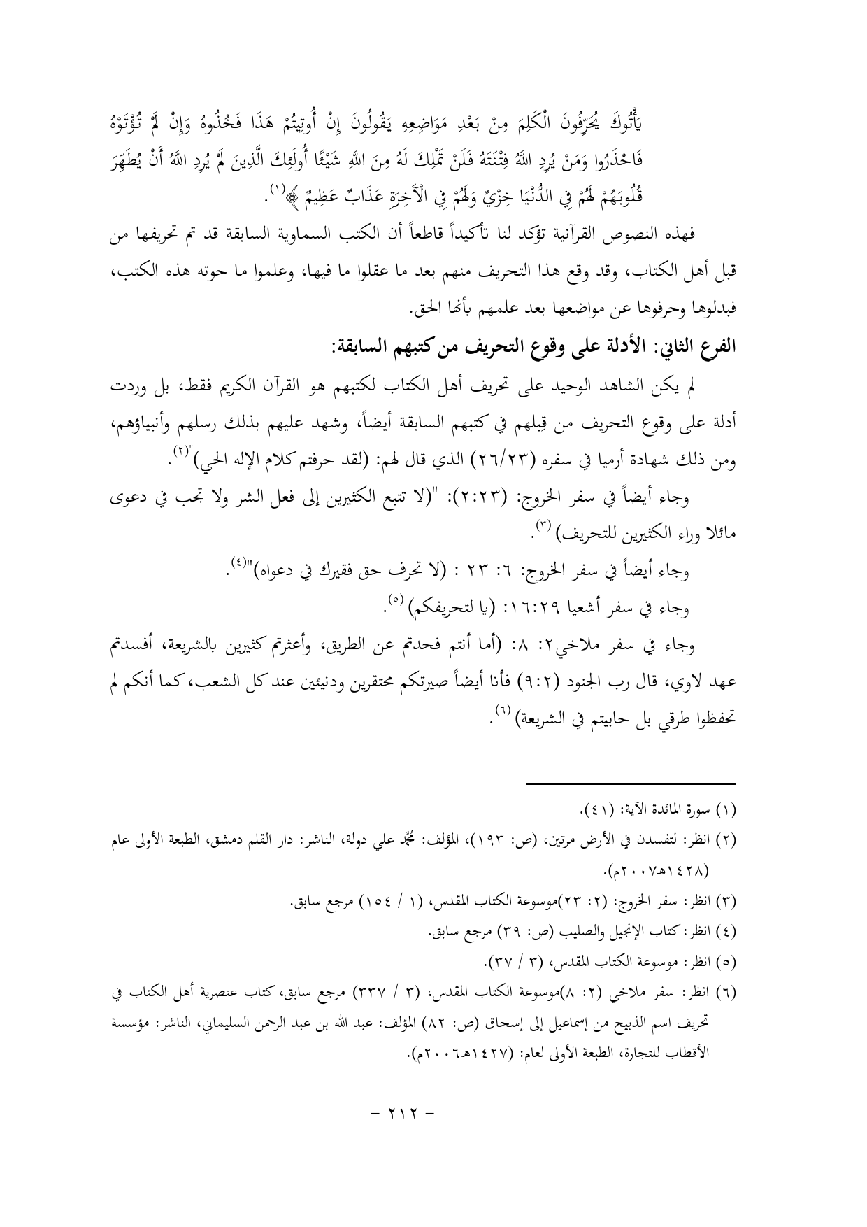 الفرع الثاني: الأدلة على وقوع التحريف من كتبهم السابقة: