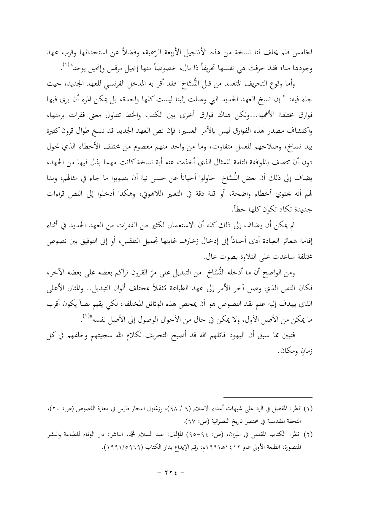 (¬2) انظر: الكتاب المقدس في الميزان، (ص: 94 - 95) المؤلف: عبد السلام محمد, الناشر: دار الوفاء للطباعة والنشر المنصورة, الطبعة الأولى عام 1412 هـ 1991 م, رقم الإيداع بدار الكتاب (5969/ 1991).