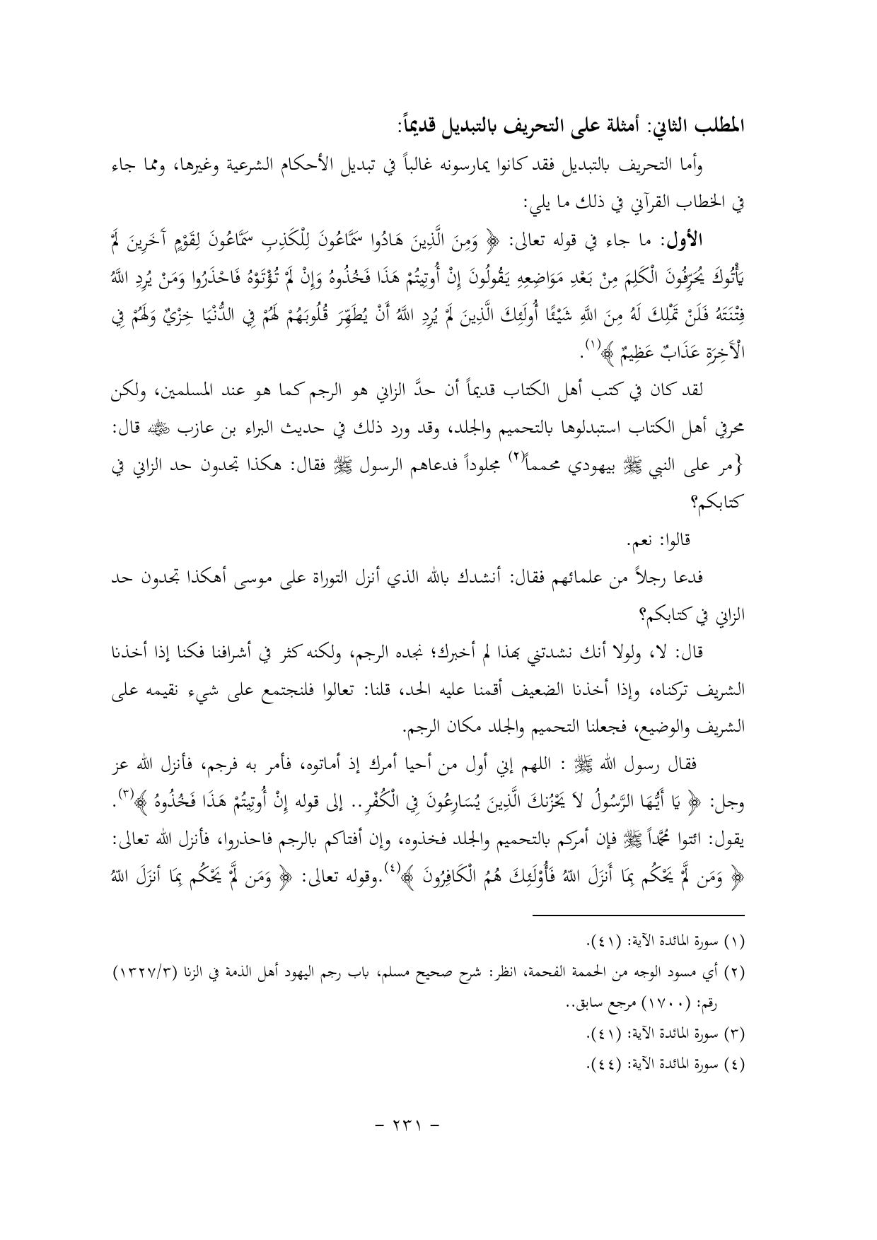 المطلب الثاني: أمثلة على التحريف بالتبديل قديماً: