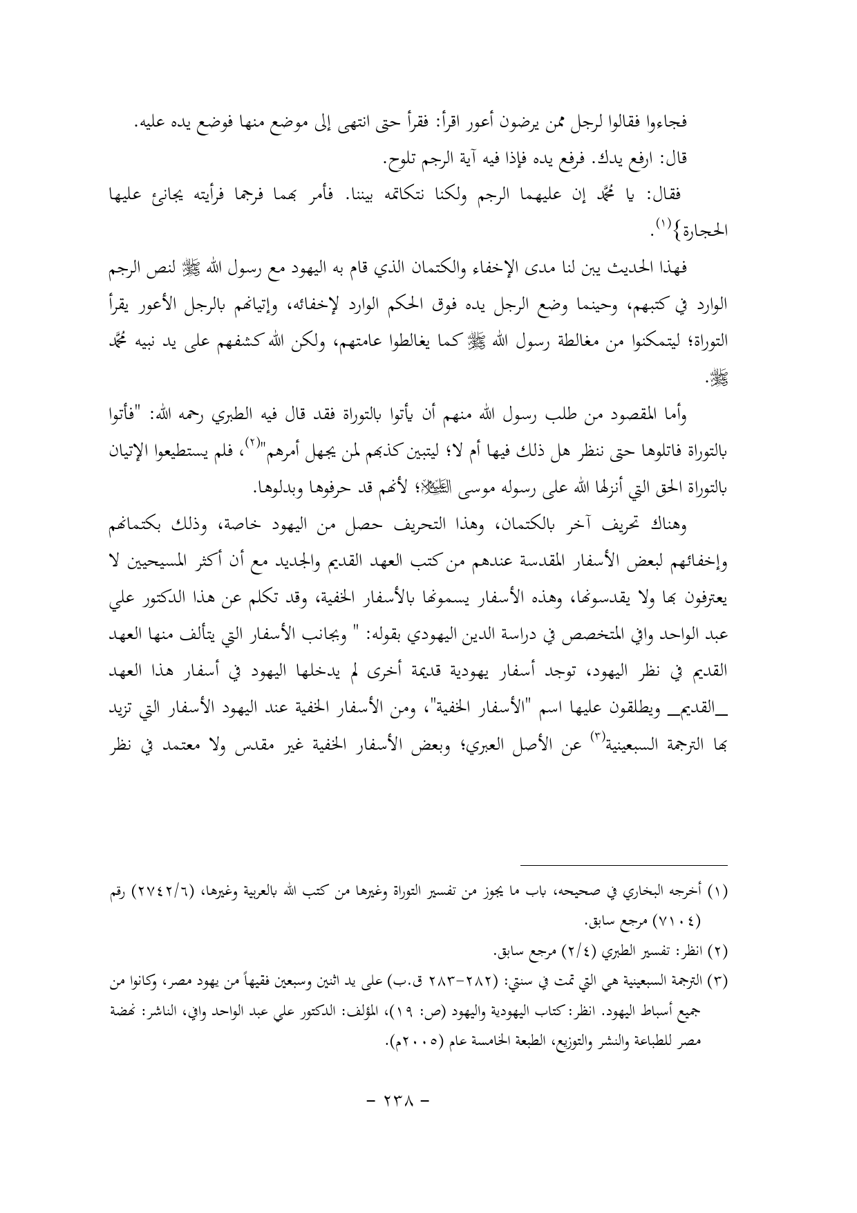 (¬1) أخرجه البخاري في صحيحه, باب ما يجوز من تفسير التوراة وغيرها من كتب الله بالعربية وغيرها, (6/ 2742) رقم (7104) مرجع سابق.