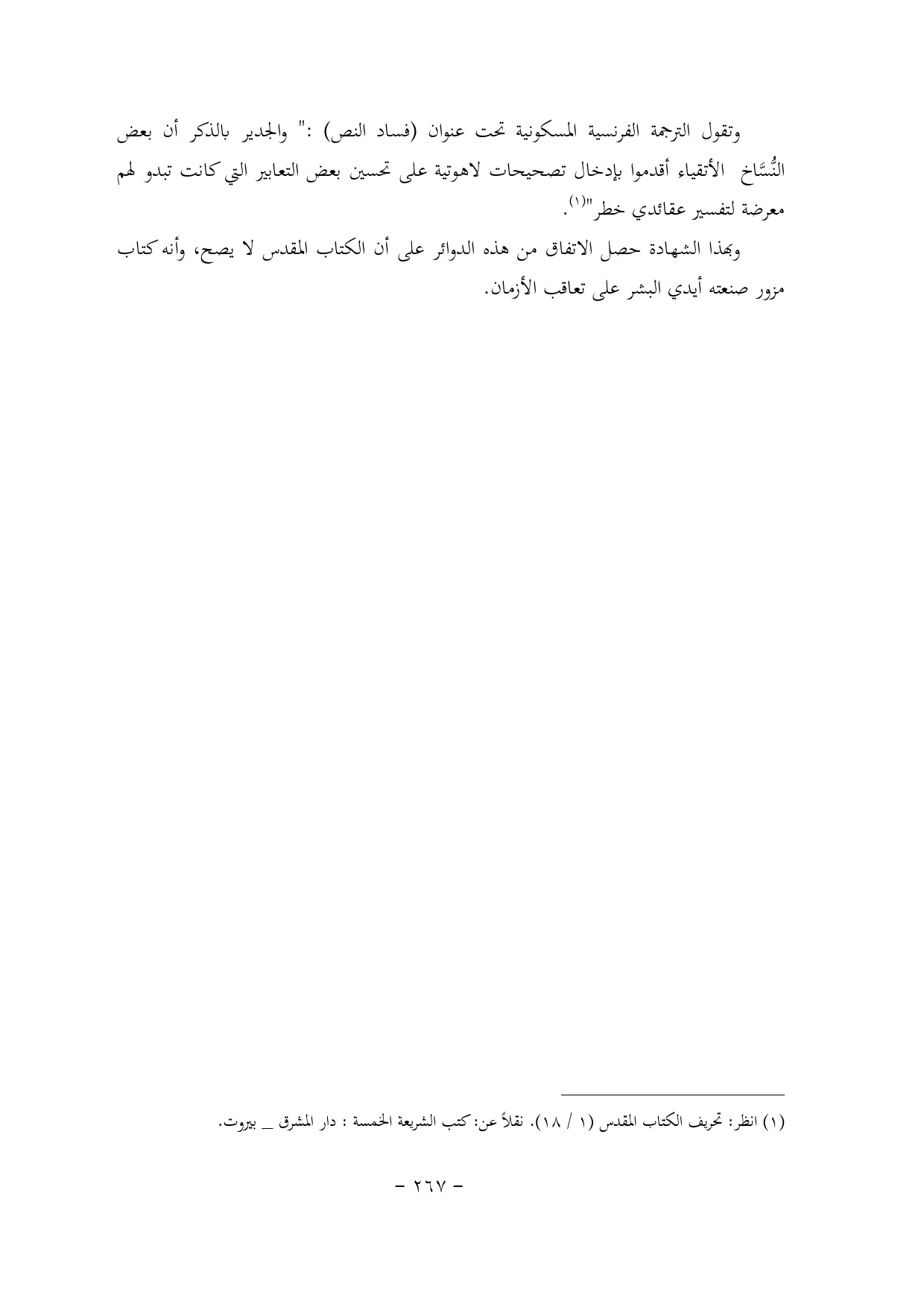 (¬1) انظر: تحريف الكتاب المقدس (1/ 18). نقلاً عن: كتب الشريعة الخمسة: دار المشرق _ بيروت.