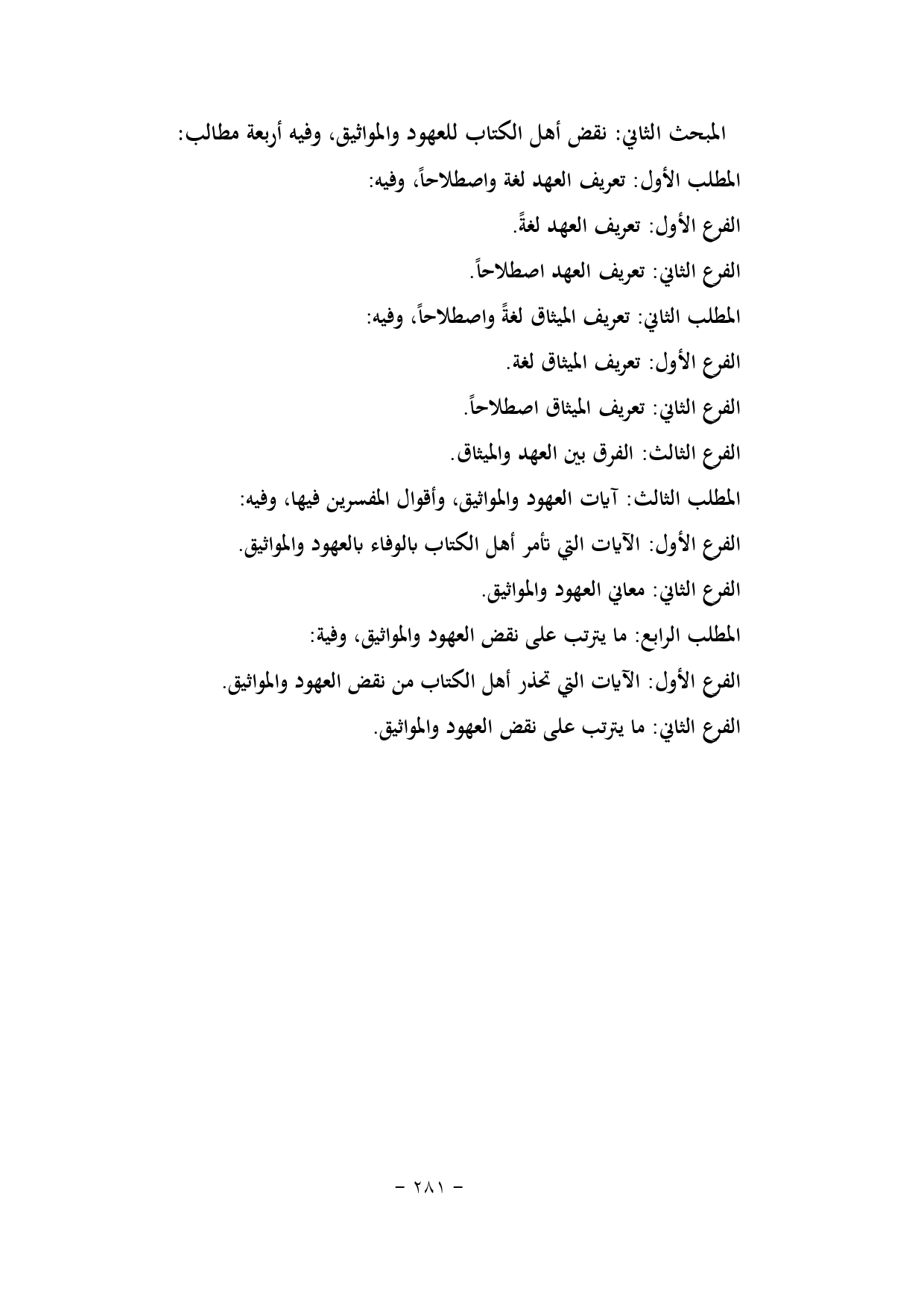 المبحث الثاني: نقض أهل الكتاب للعهود والمواثيق, وفيه أربعة مطالب: