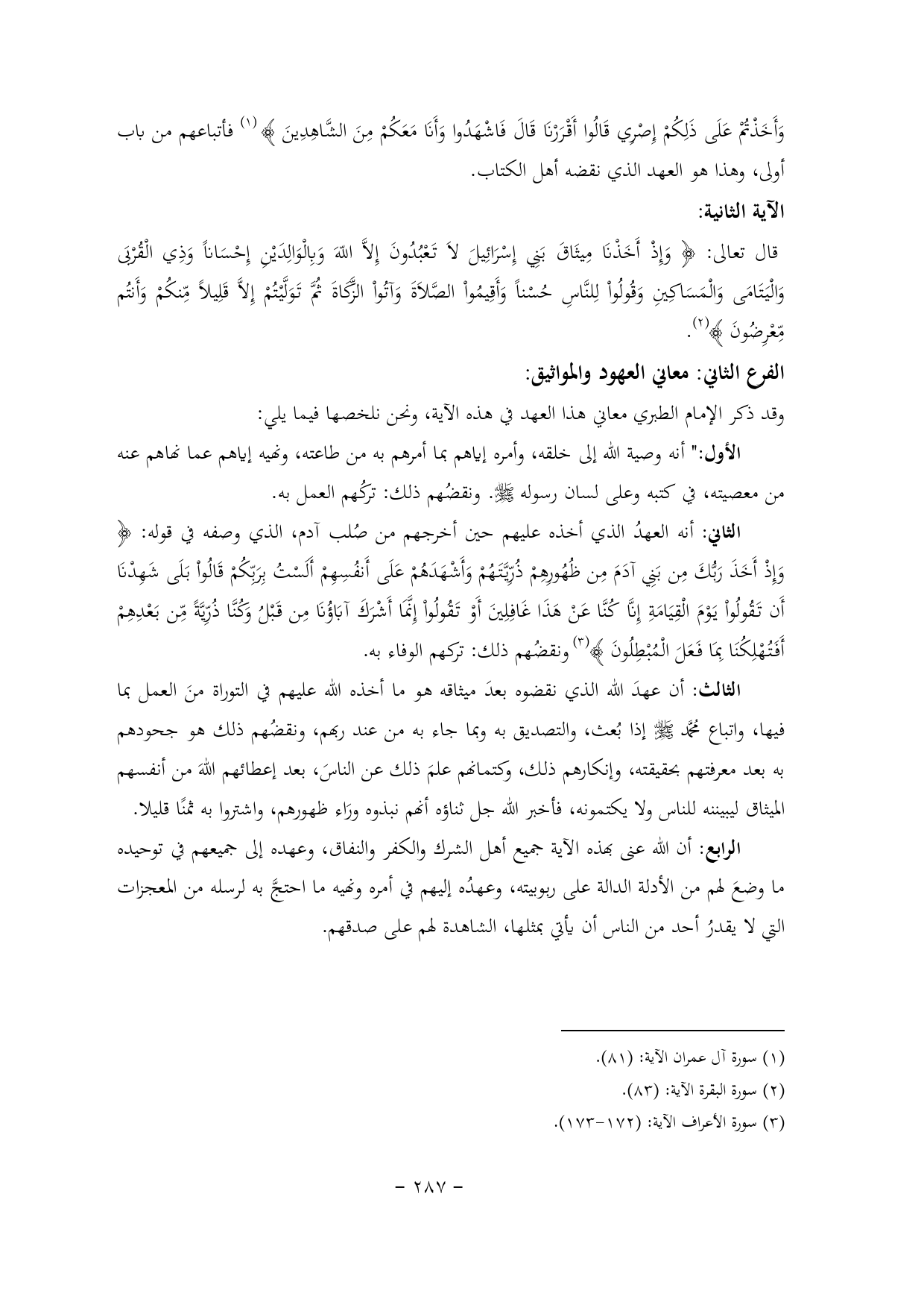 وقد ذكر الإمام الطبري معاني هذا العهد في هذه الآية, ونحن نلخصها فيما يلي: