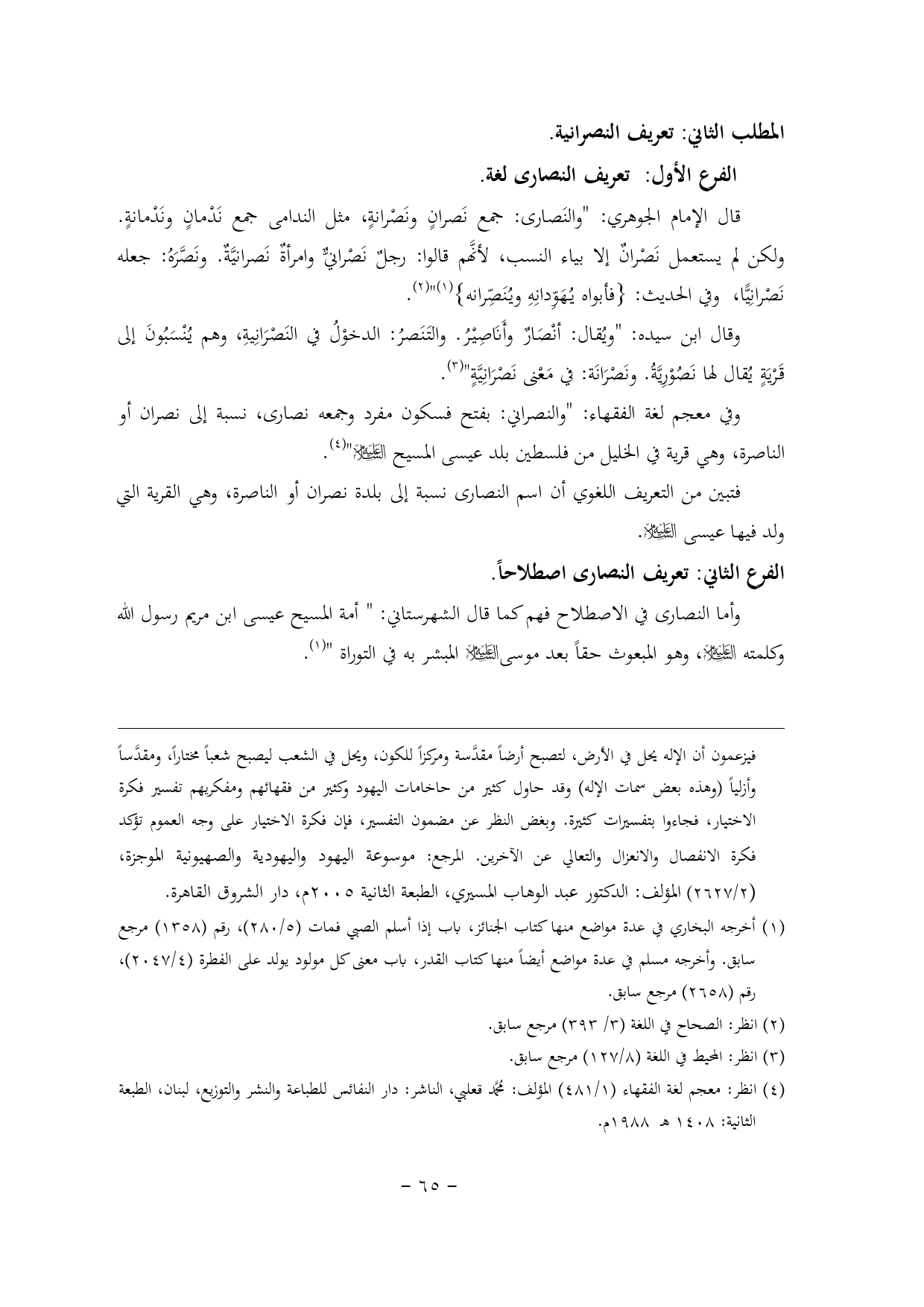 الفرع الثاني: تعريف النصارى اصطلاحاً.
