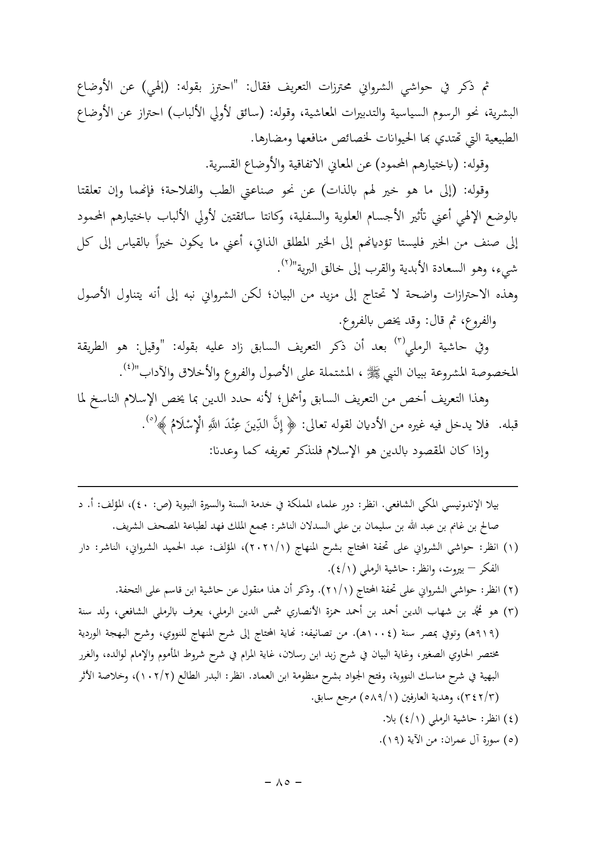 (¬1) انظر: حواشي الشرواني على تحفة المحتاج (1/ 21). وذكر أن هذا منقول عن حاشية ابن قاسم على التحفة.