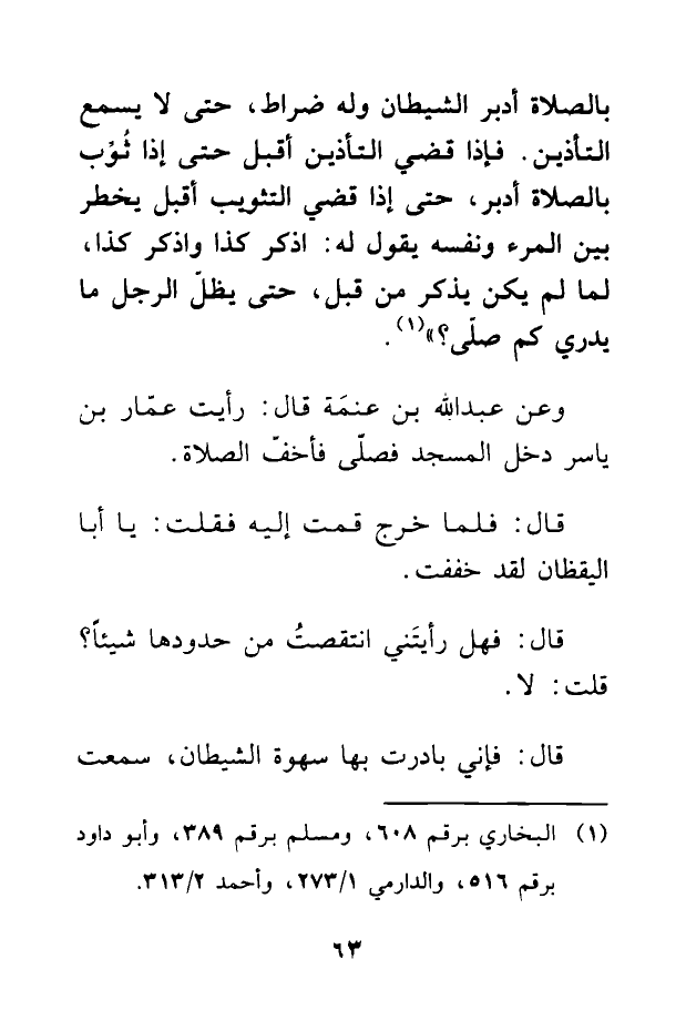 (¬1) البخاري برقم 608، ومسلم برقم 389، وأبو داود برقم 516، والدارمي 1/ 273، وأحمد 2/ 313.