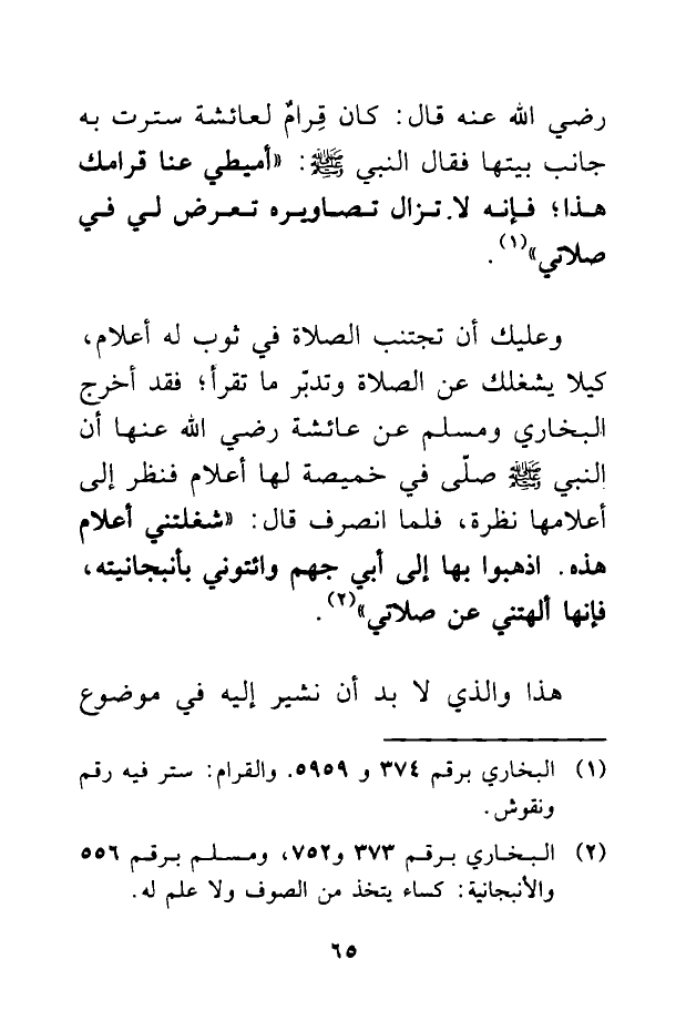 (¬2) البخاري برقم 373 و752، ومسلم برقم 556 والأنبجانية: كساء يتخذ من الصوف ولا علم له.