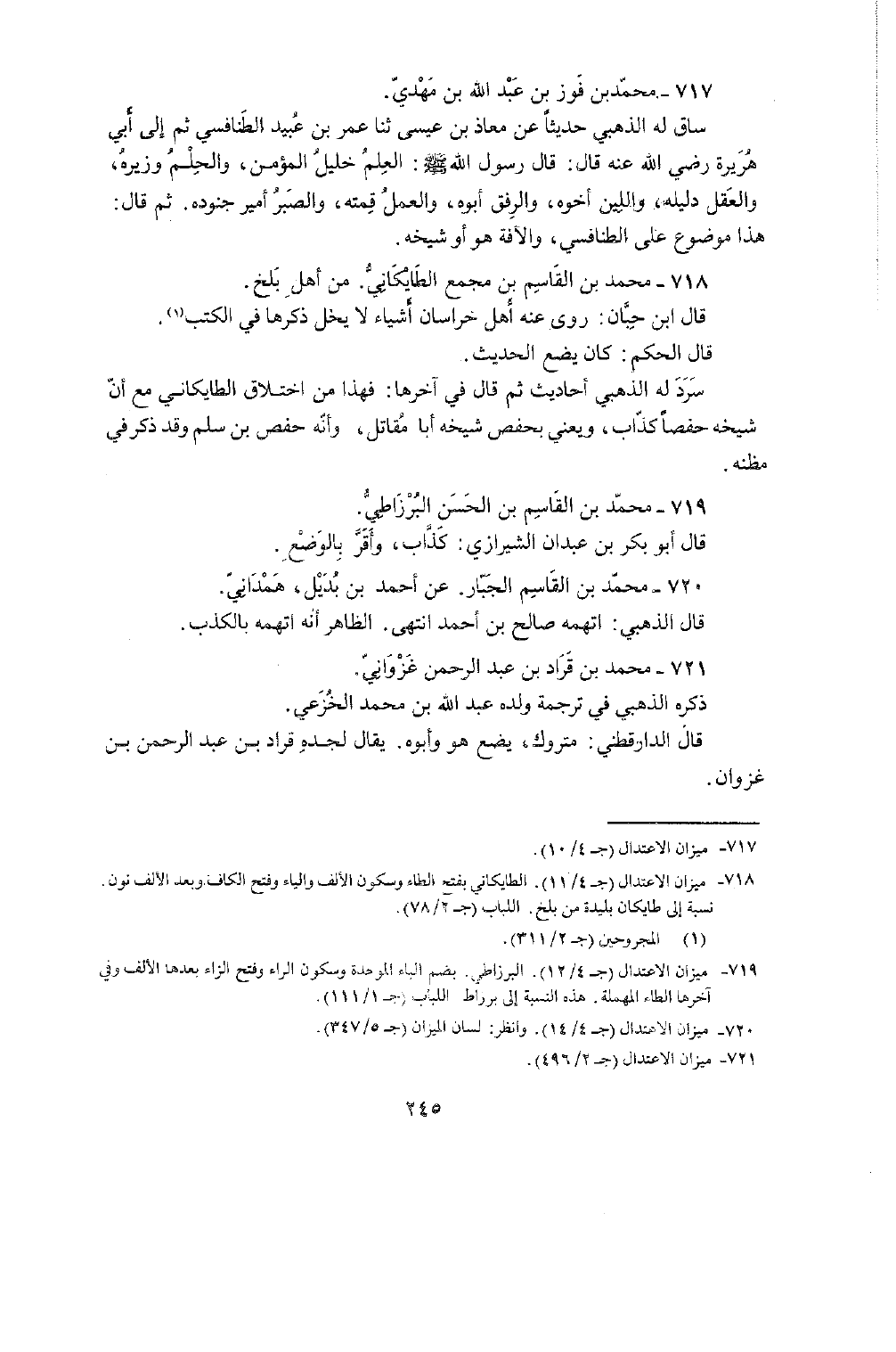719 - مُحَمَّد بن الْقَاسِم بن الْحسن البرزاطي قَالَ أَبُو بكر بن عَبْدَانِ الشِّيرَازِيّ كَذَّاب وَأقر بِالْوَضْعِ