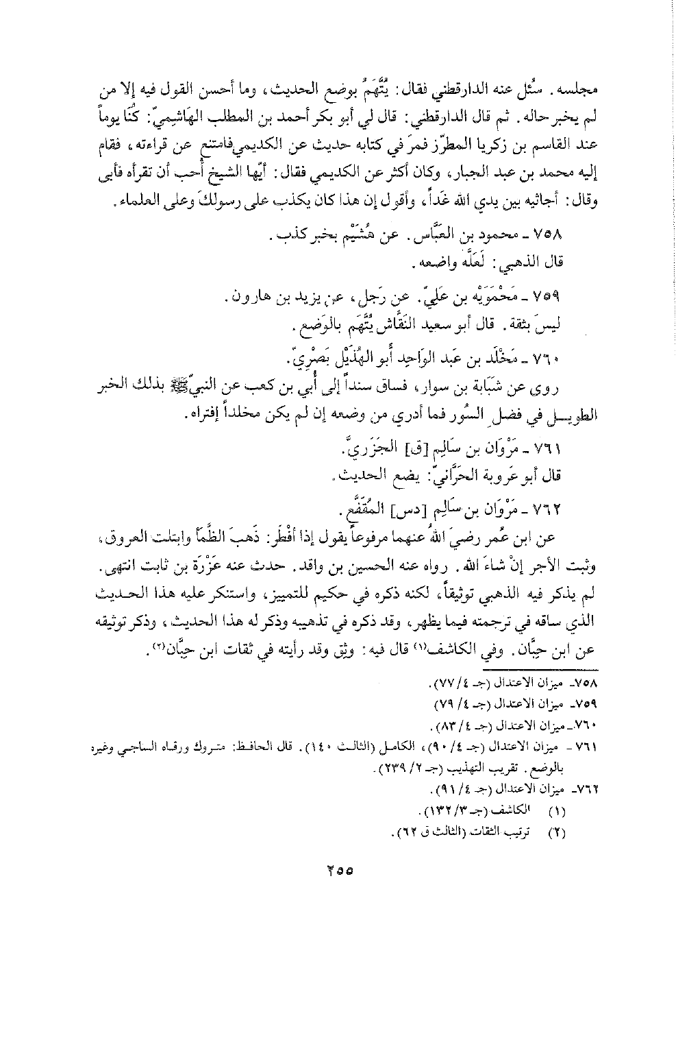 760 - مخلد بن عبد الْوَاحِد أَبُو الْهُذيْل بَصرِي روى عَن شَبابَة بن سوار فساق سندا إِلَى أبي بن كَعْب عَن النَّبِي صلى الله عَلَيْهِ وَسلم بذلك الْخَبَر الطَّوِيل فِي فضل السُّور فَمَا أَدْرِي من وَضعه أَن لم يكن مخلدا افتراه