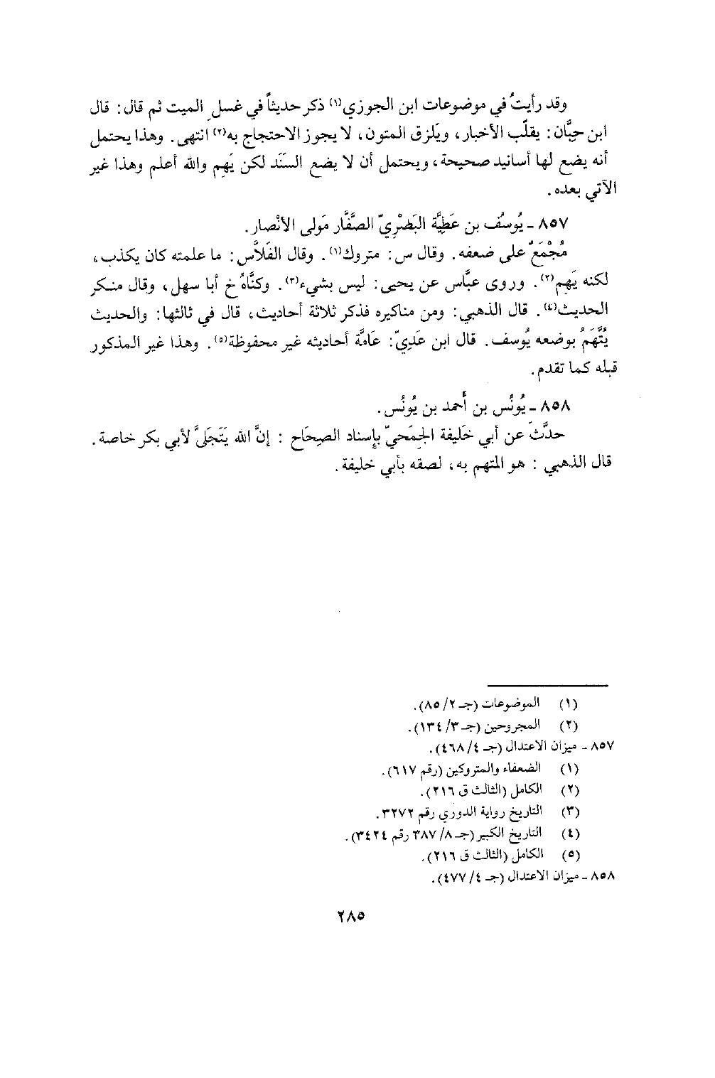 858 - يُونُس بن أَحْمد بن يُونُس حدث عَن أبي خَليفَة الجُمَحِي بِإِسْنَاد الصِّحَاح أَن الله يتجلى لأبي بكر خَاصَّة قَالَ الذَّهَبِيّ هُوَ الْمُتَّهم بِهِ لصقه بِأبي خَليفَة