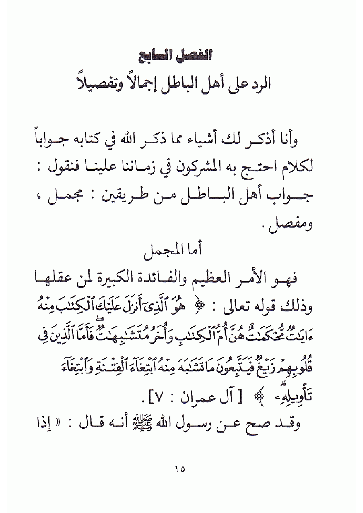 [الفصل السابع الرد على أهل الباطل إجمالا وتفصيلا]