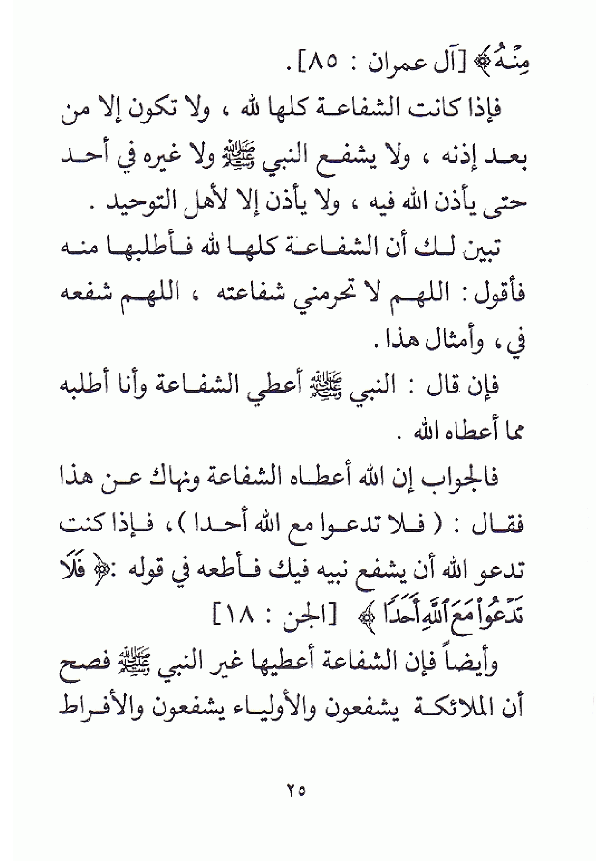 فإذا كانت الشفاعة كلها لله، ولا تكون إلا من بعد إذنه، ولا يشفع النبي - صلى الله عليه وسلم - ولا غيره في أحد حتى يأذن الله فيه، ولا يأذن إلا لأهل التوحيد.