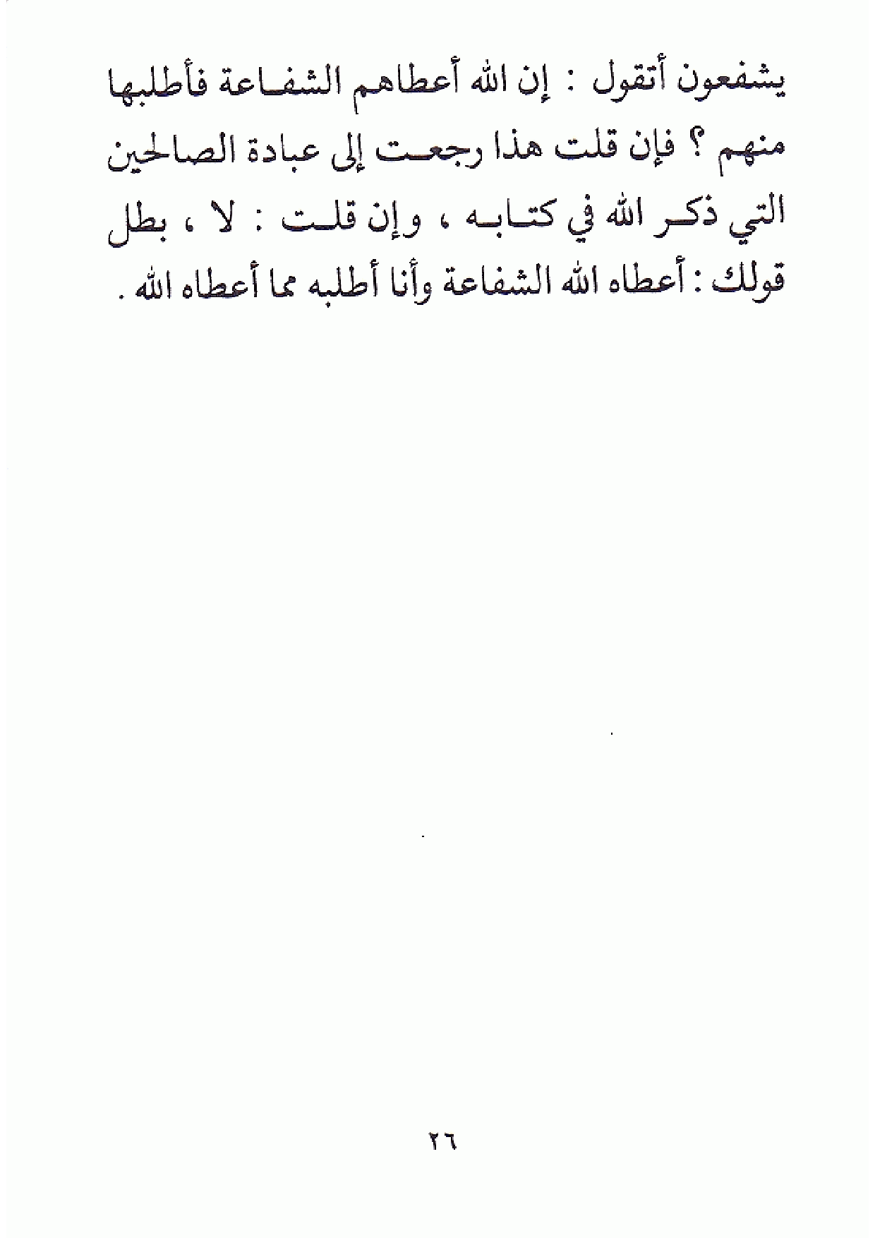 يشفعون أتقول: إن الله أعطاهم الشفاعة فأطلبها منهم؟ فإن قلت هذا رجعت إلى عبادة الصالحين التي ذكر الله في كتابه، وإن قلت: لا، بطل قولك: أعطاه الله الشفاعة وأنا أطلبه مما أعطاه الله.