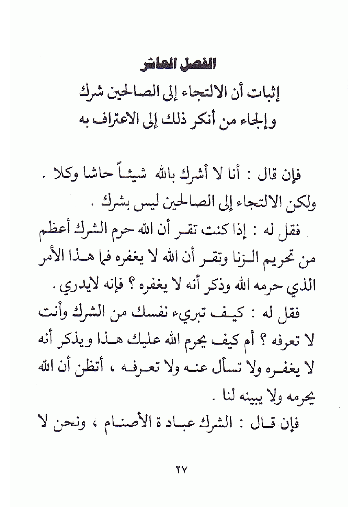 [الفصل العاشر إثبات أن الالتجاء إلى الصالحين شرك]