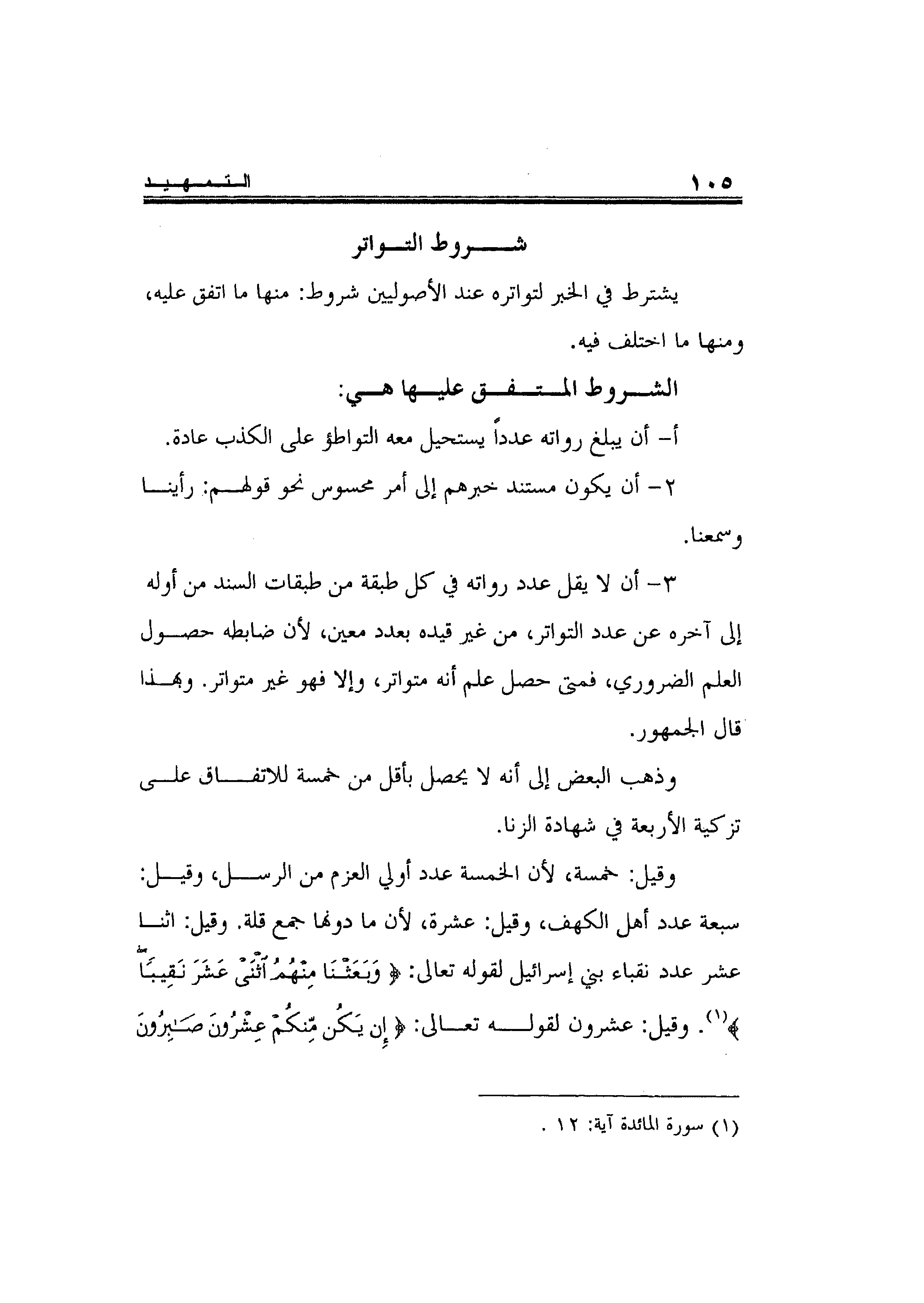 يشترط في الخبر لتواتره عند الأصوليين شروط: منها ما اتفق عليه، ومنها ما اختلف فيه.