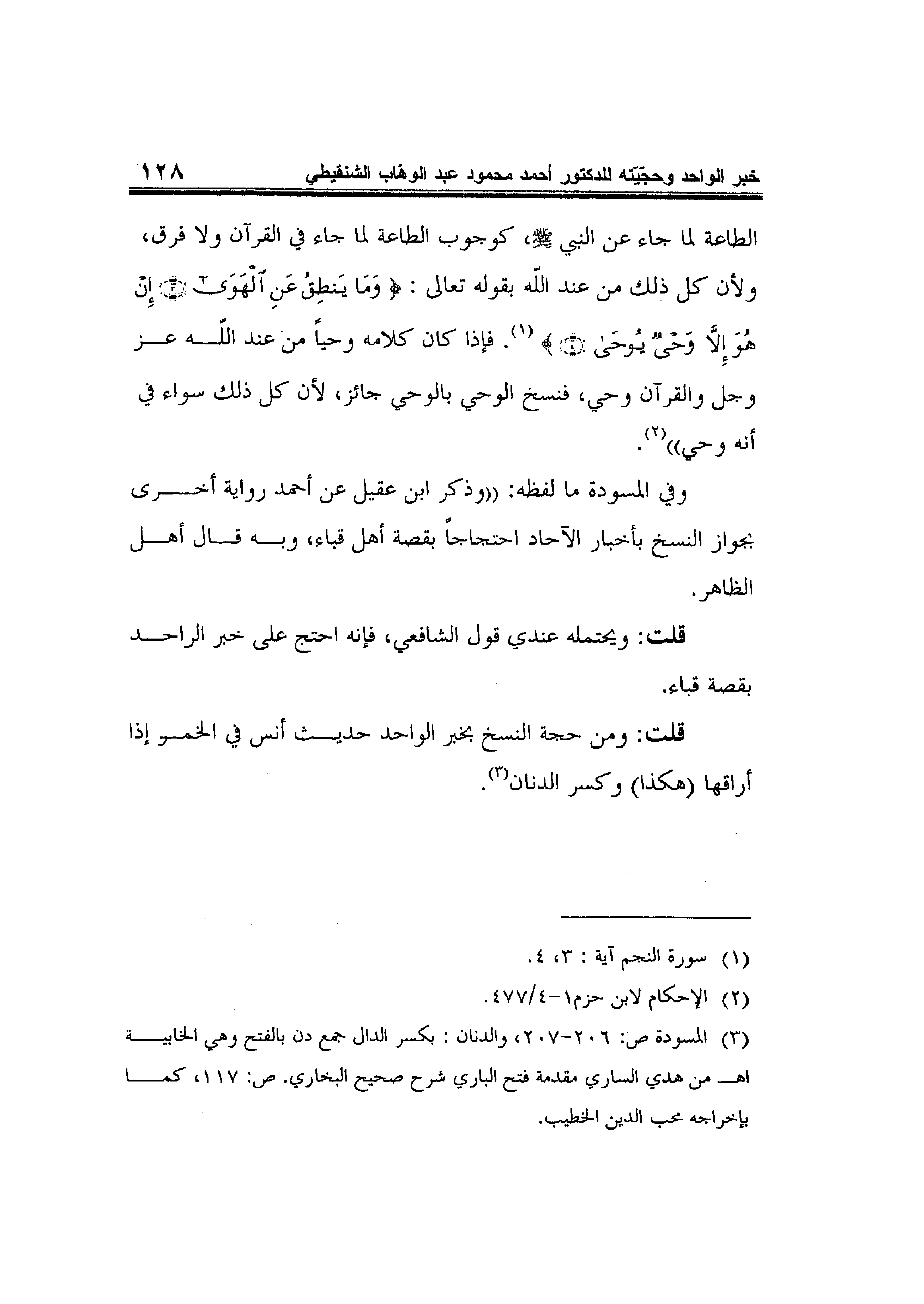 3 المسودة ص: 206-207، والدنان: بكسر الدال جمع دن بالفتح وهي الخابية اهـ من هدي الساري مقدمة فتح الباري شرح صحيح البخاري. ص: 117، كما بإخراجه محب الدين الخطيب.